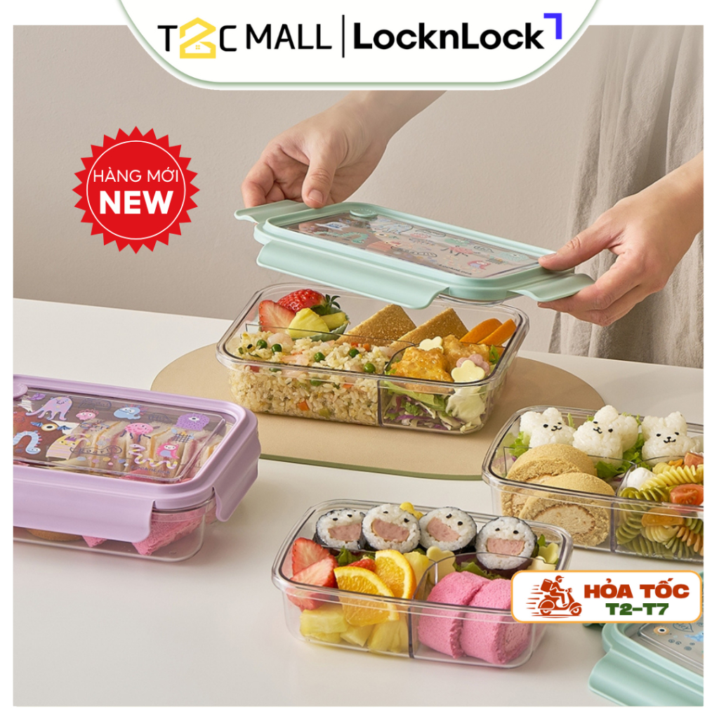 Hộp Cơm LocknLock 3 Ngăn Dày Dặn Trong Suốt Dung tích 750ml, 1L Chính Hãng LCB501, LCB502 - T2CMall