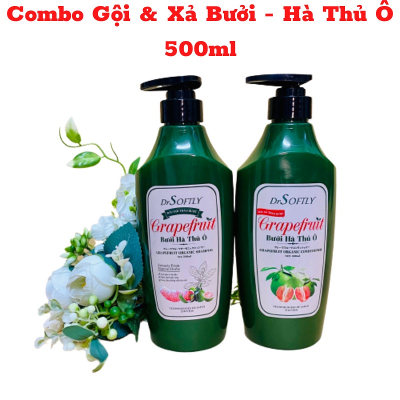 [Chính Hãng] Bộ Dầu Gội Xả Bưởi & Hà Thủ Ô Dr Softly, Giảm R.ụng Tóc, Sạch Gàu (500ML)