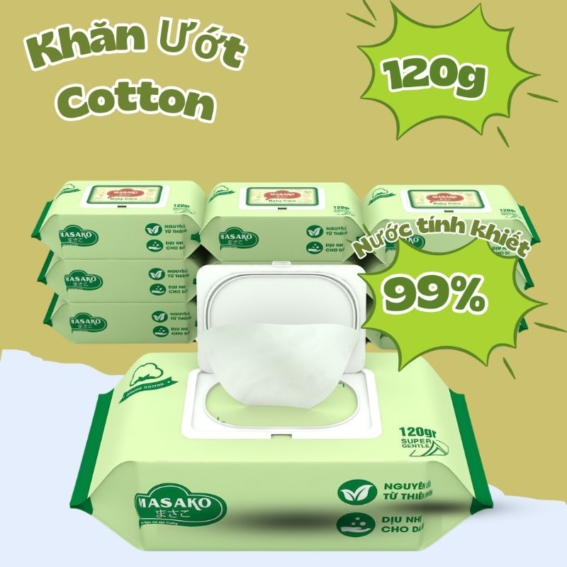 [Sợi Cotton]Khăn Ướt tẩy trang Masako. Vải Sợi Bông ,Không cồn, Parabens. cực kỳ an toàn. phù hợp da yếu, da phục hồi