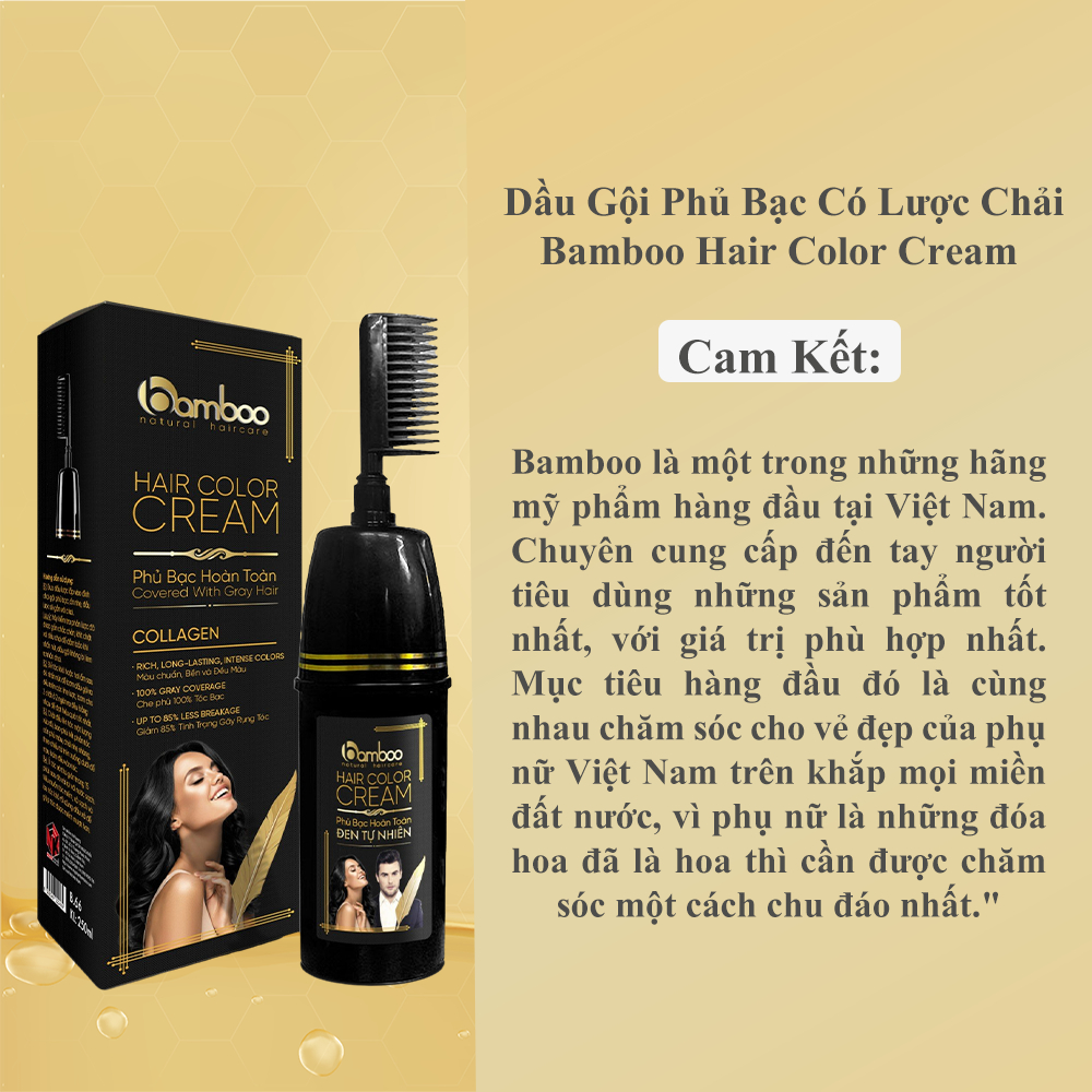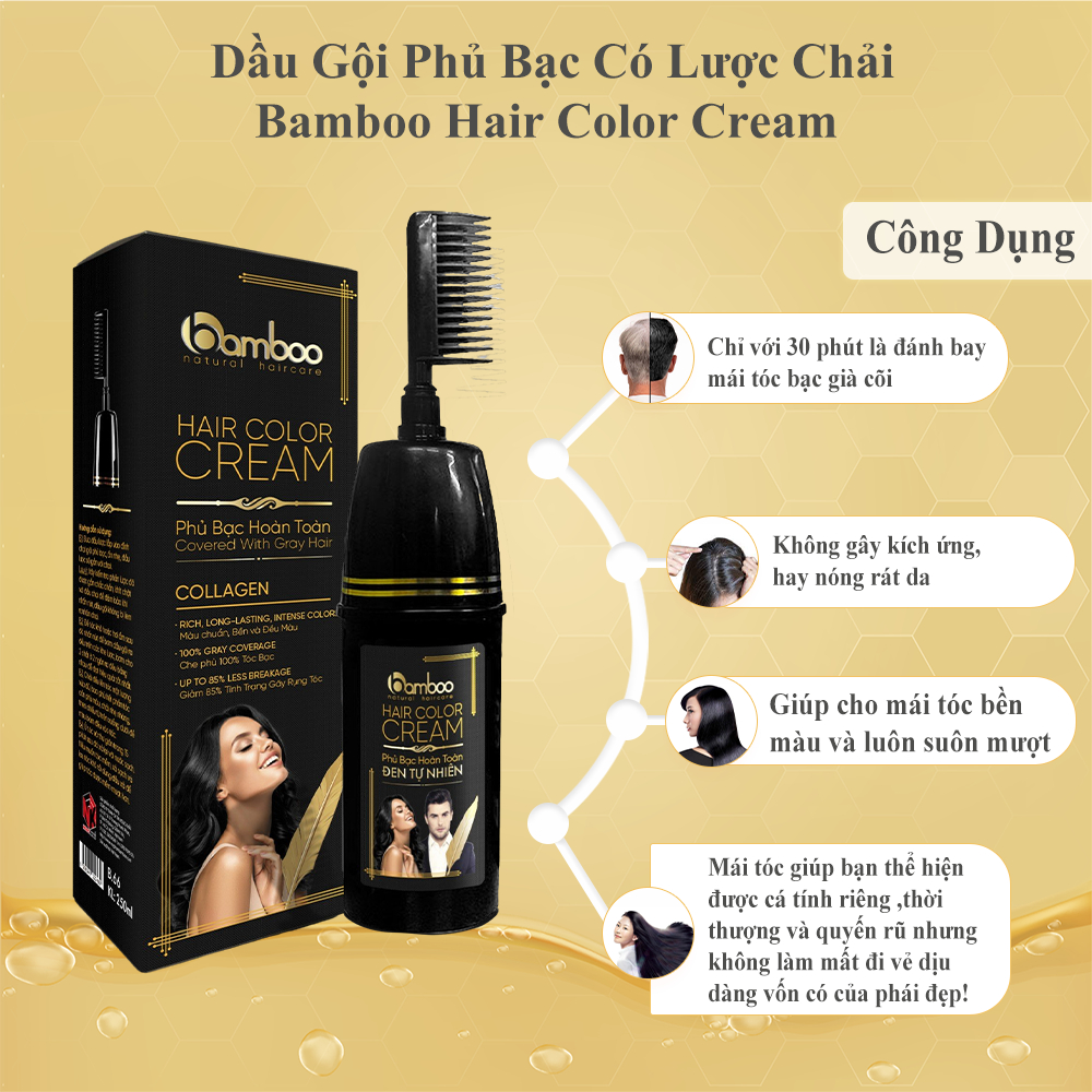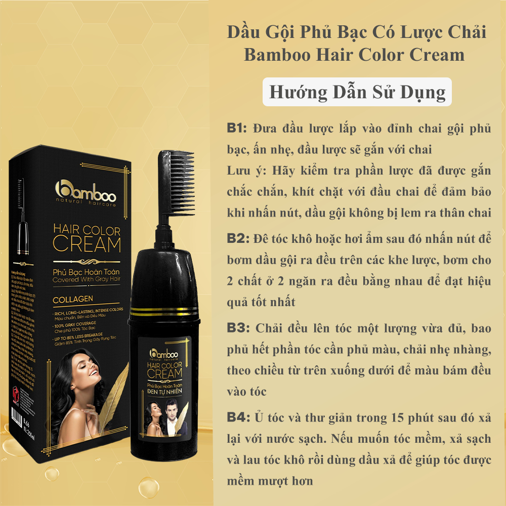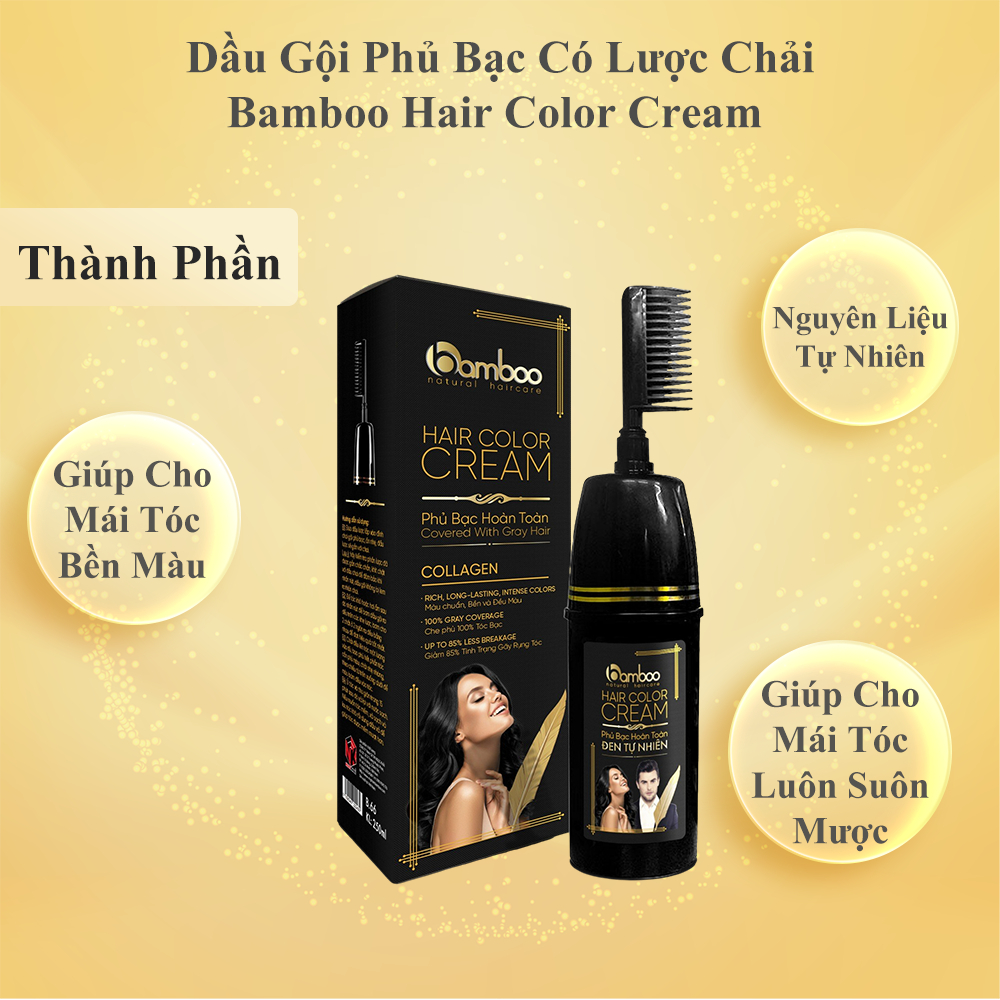 Dầu gội phủ bạc BAMBOO kèm lược chải nhuộm tóc nhanh tại nhà, đều màu tiết kiệm thời gian, không lem