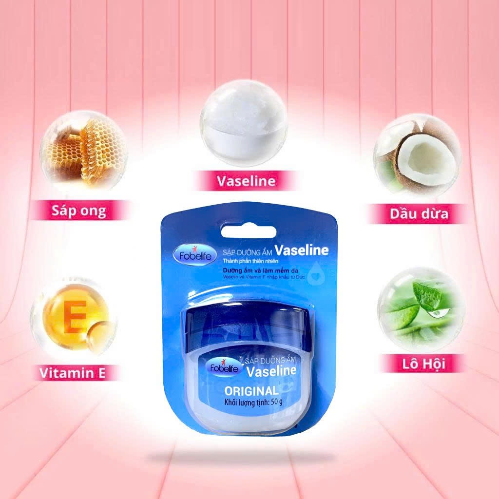 Sáp dưỡng ẩm Vaseline Original Fobelife làm da mềm mịn, môi căng mọng (Hũ 7g)