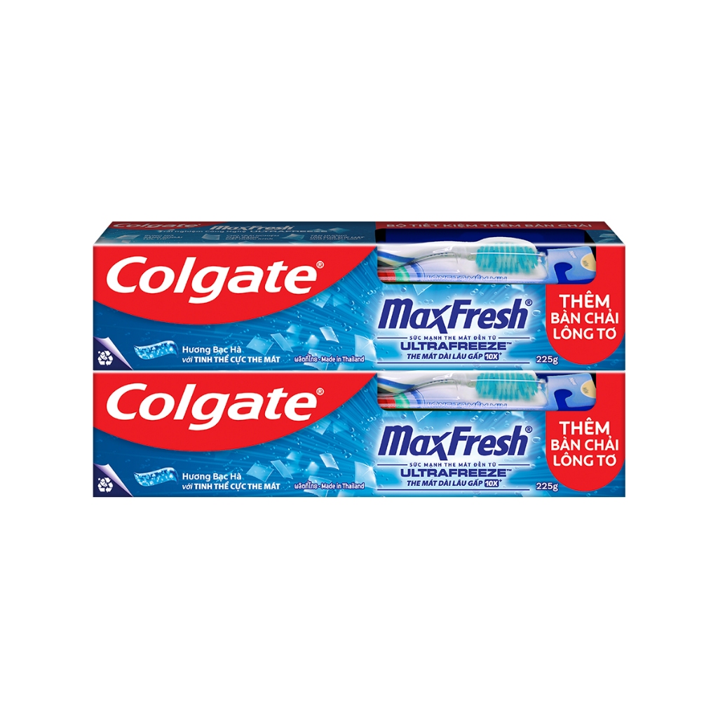 Bộ 2 Kem đánh răng Colgate Maxfresh bạc hà the mát 225g/tuýp tặng bàn chải