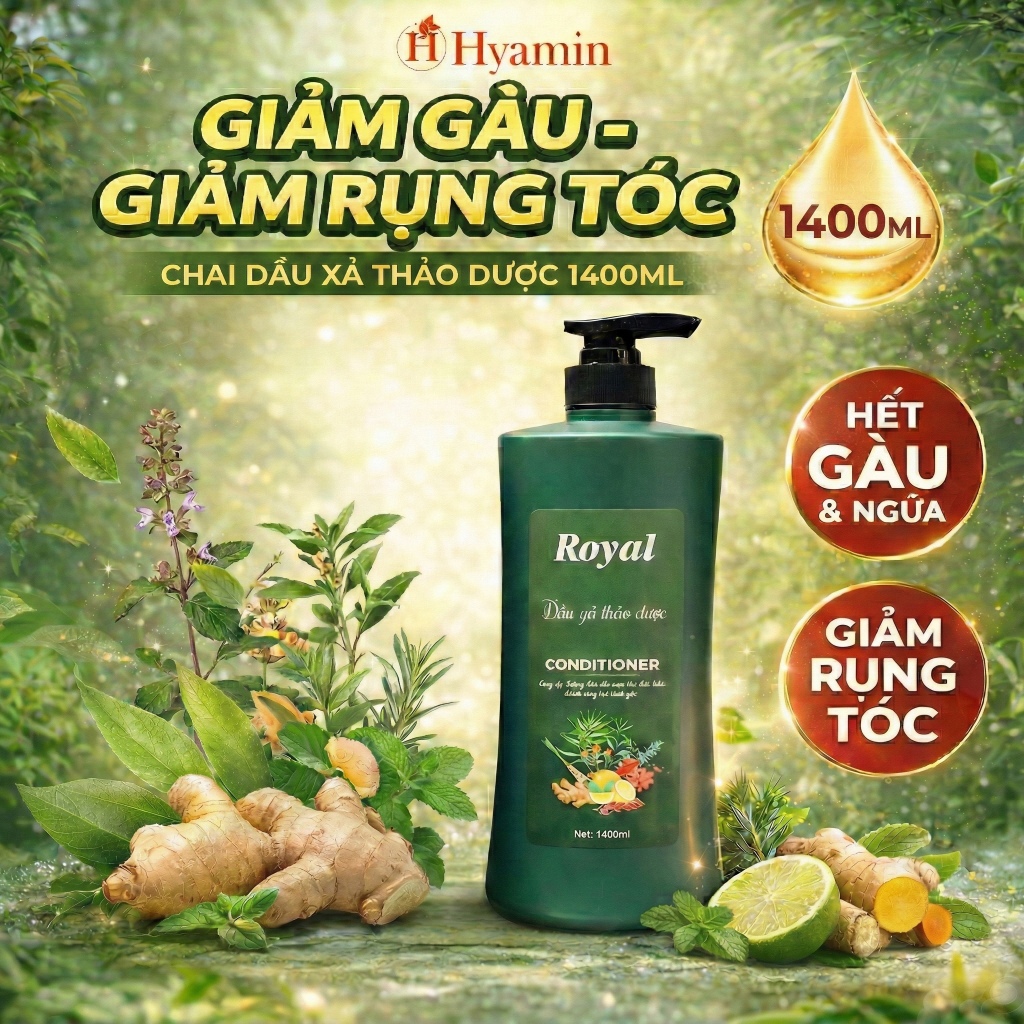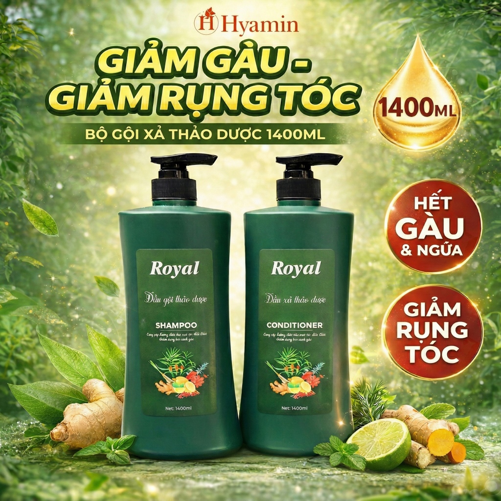 Bộ Dầu Gội Xả Thảo Dược Royal Gừng Sả Chanh Giảm Gãy Rụng Mềm Mượt Tóc 1400ml
