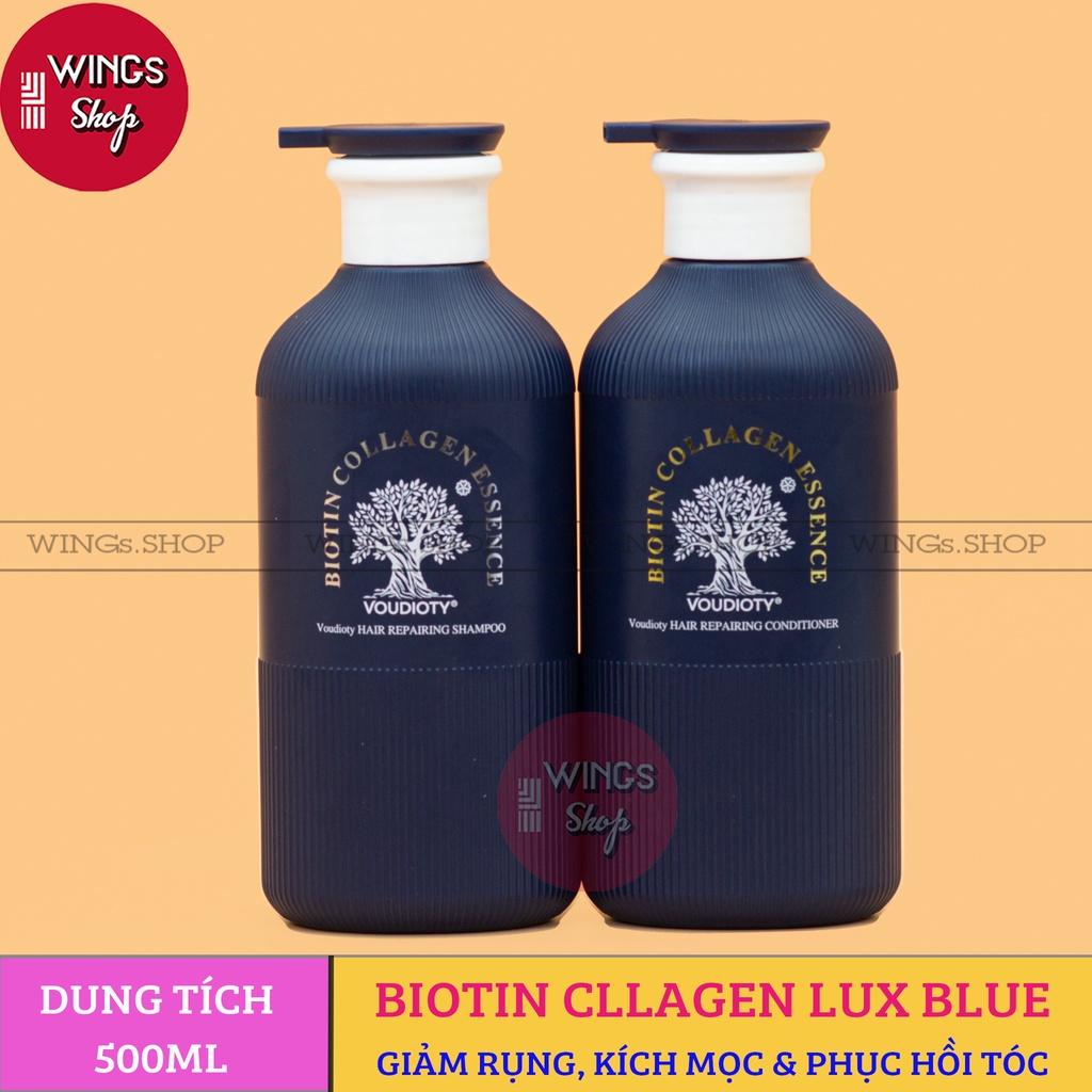 Cặp Dầu Gội Xả Biotin Collagen Lux Blue Giảm Rụng Tóc, Kích Mọc Tóc, Phục Hồi Tóc Khô Xơ 500ML | Wings Shop