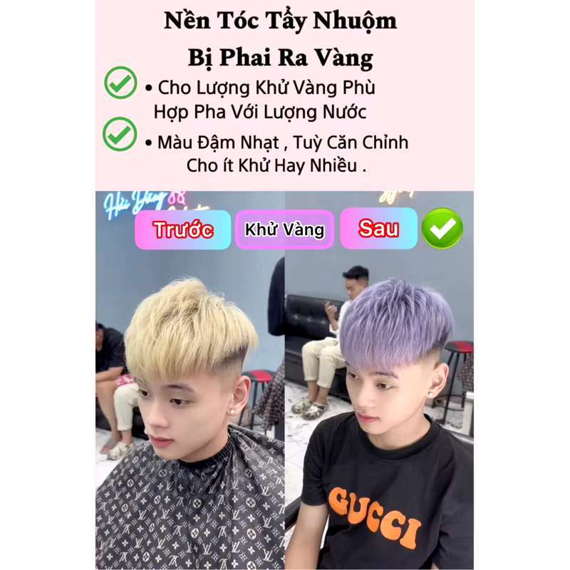 Khử ánh sắc vàng tóc, mạnh hơn dầu gội tím ,khử vàng tóc khi bị phai ra mầu vàng bò