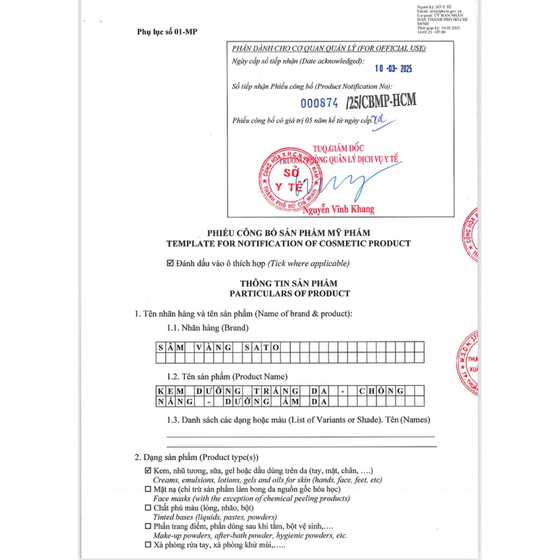 Kem Dưỡng Trắng Da Sâm Vàng Sato Chính Hãng – Mờ Nám, Tàn Nhang, Dưỡng Ẩm, Bảo Vệ Da, Chống Nắng Nhẹ