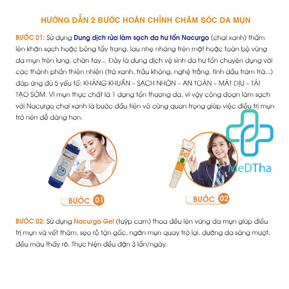 Nacurgo - Bộ sản phẩm chăm sóc da mụn, làm sạch da, ngừa mụn, dầu mụn, ngừa thâm, sẹo Medstand