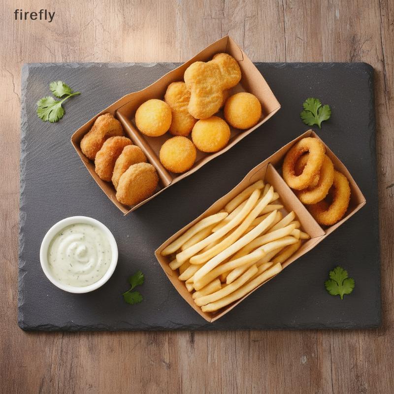 [Firefly] 50 Chiếc Khay Phục Vụ Thực Phẩm Giấy Kraft Dùng Một Lần Hai Lưới Sna Khoai Tây Chiên Pháp Chien Salad Thùng Đựng Ra Cho Bữa Tiệc [VN]