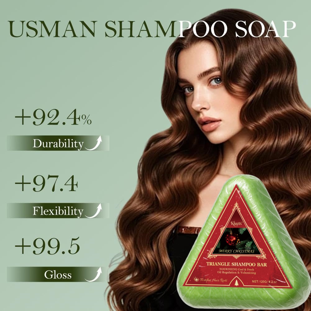 Usman Grass Natural Shampoo Bar - Công thức làm dịu lá cây bách, Chăm sóc tóc th ảo dược rắn hình tam giác xanh.