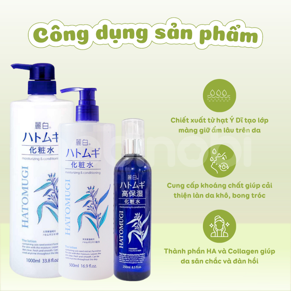 (Chính hãng) Toner/ Nước hoa hồng dưỡng ẩm và làm sáng da Reihaku Hatomugi Lotion (500ml)