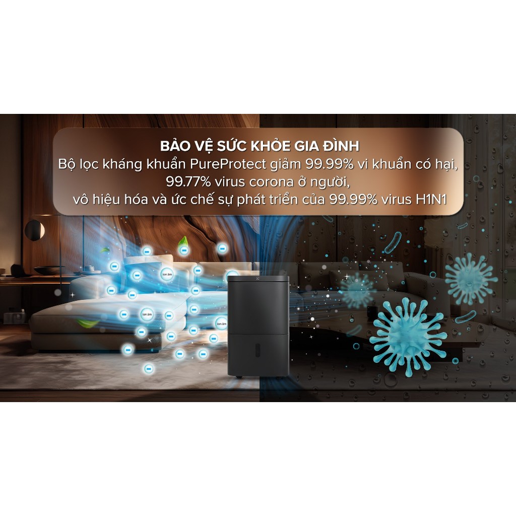 Máy lọc khí hút ẩm Electrolux EDH12TRBD2 50m2 | Máy lọc không khí và hút ẩm UltimateHome 500 24L