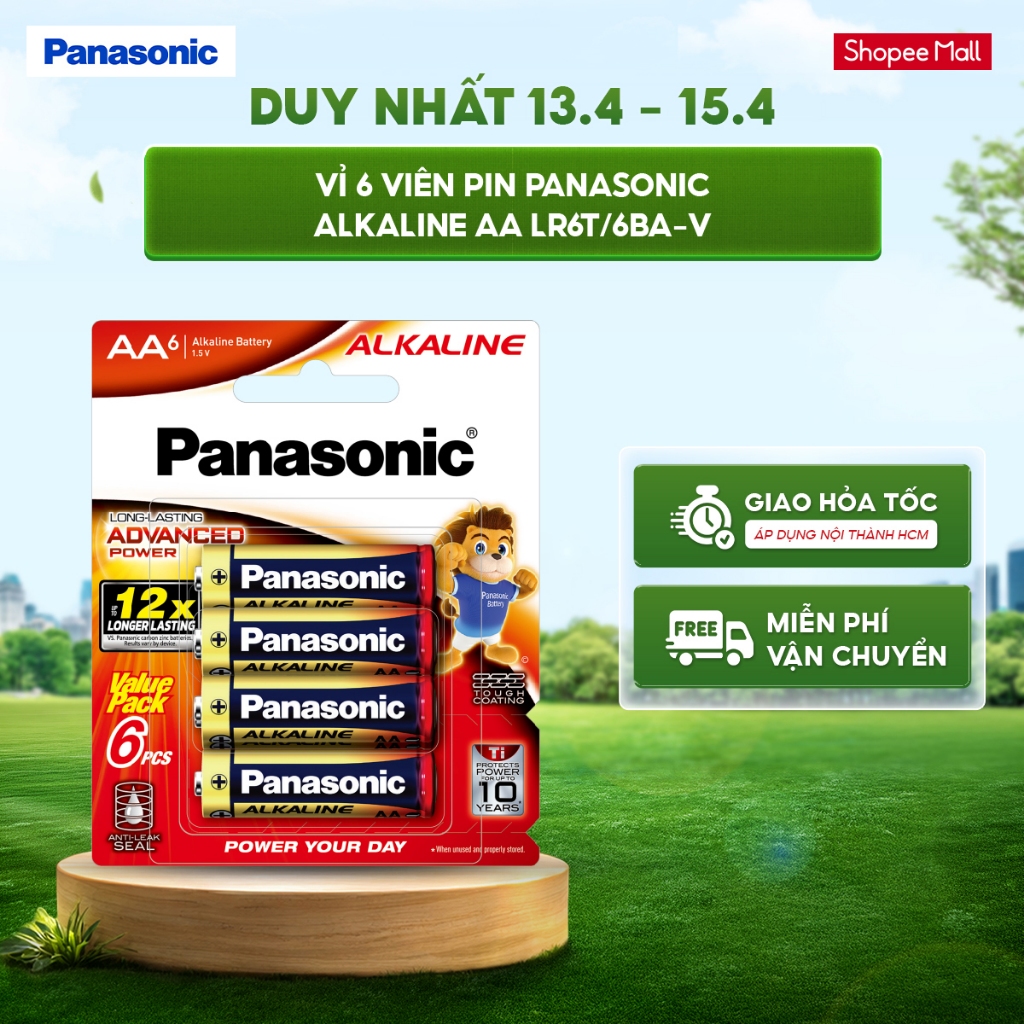 Vỉ 6 viên Pin Panasonic Alkaline AA LR6T/6BA-V – Hàng Chính Hãng