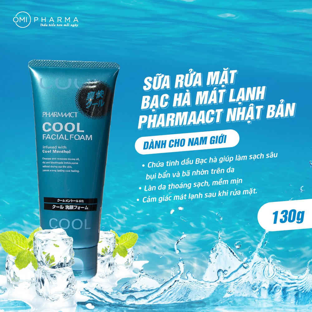 Sữa Rửa Mặt Bạc Hà Mát Lạnh Cho Nam Giới Pharmaact Cool Facial Foam (130g)