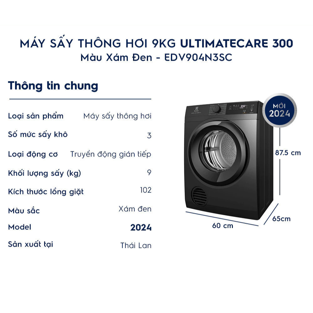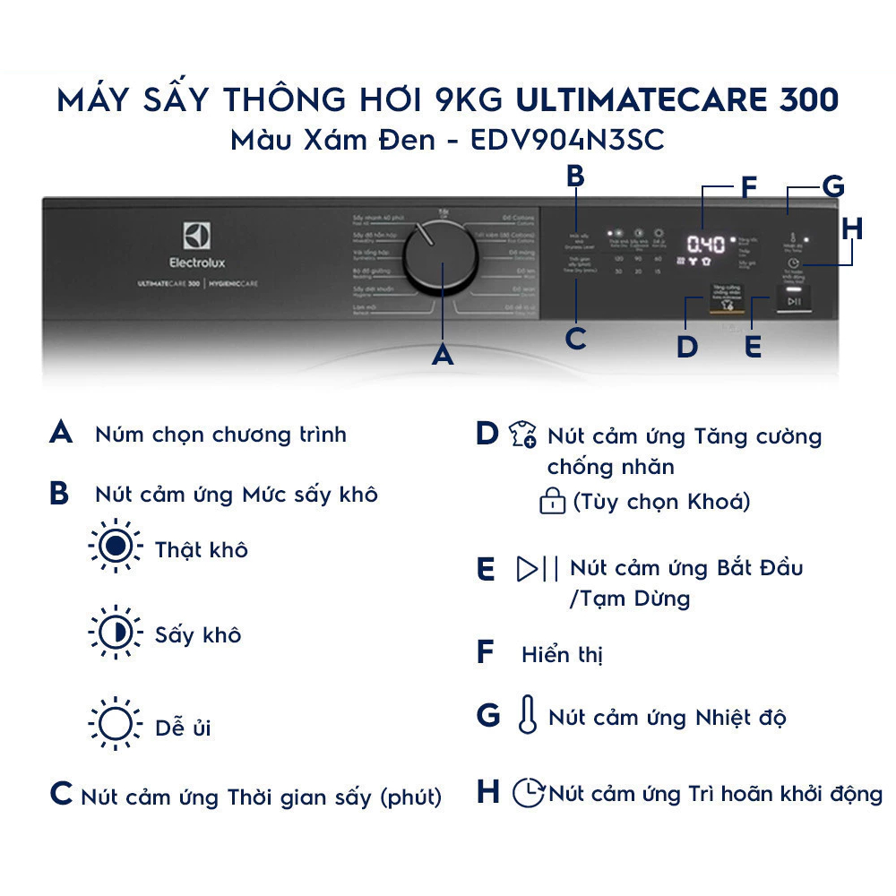 EDV904N3SC | EDS904N3SC - Máy Sấy Thông Hơi ELECTROLUX 9 Kg [Toàn Quốc]{GIẢM 10%}