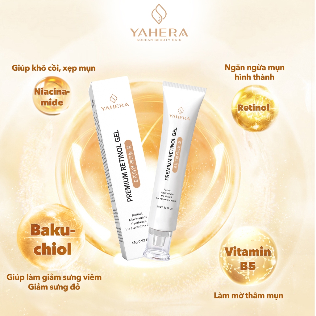Gel chấm mụn cao cấp giảm sưng viêm, khô cồi, xệp mụn, mờ thâm mụn, giảm sưng đỏ YAHERA Premium Retinol Gel 15G