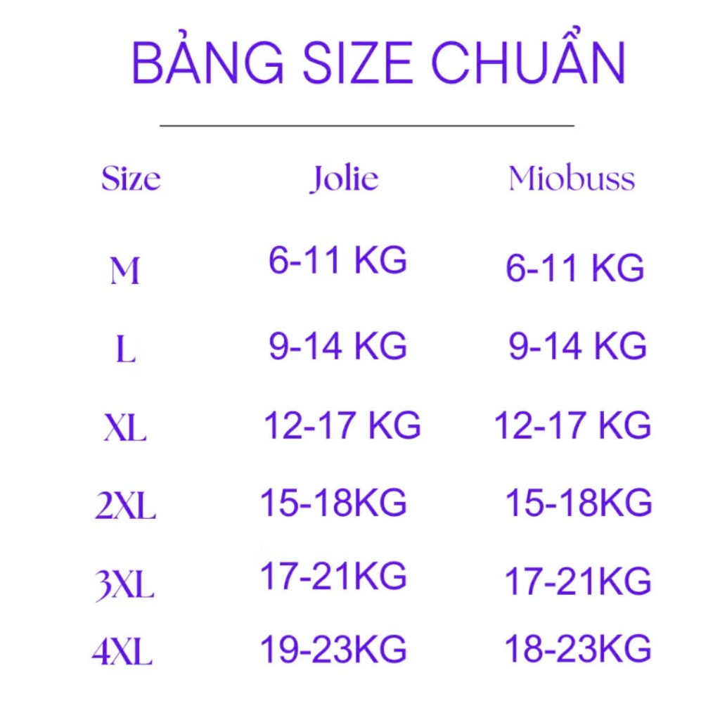 [COMBO 50MIẾNG] Tã/Bỉm dán,quần JOLIE cao cấp đủ size M/L/XL/XXL/XXXL cho bé 3-25kg