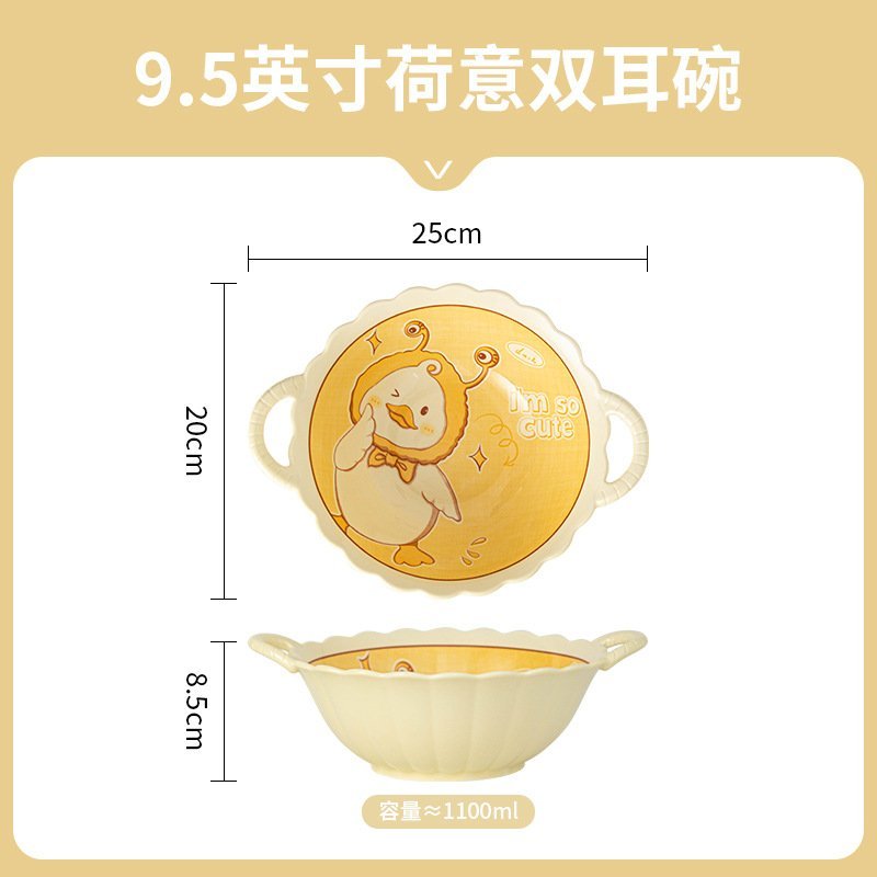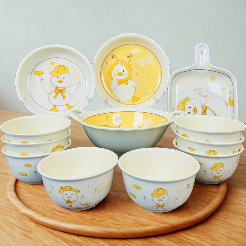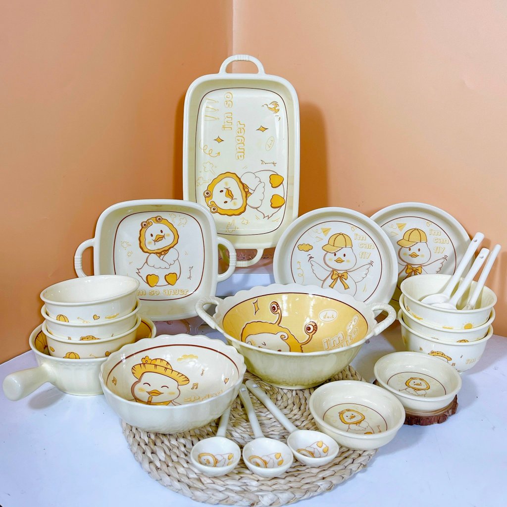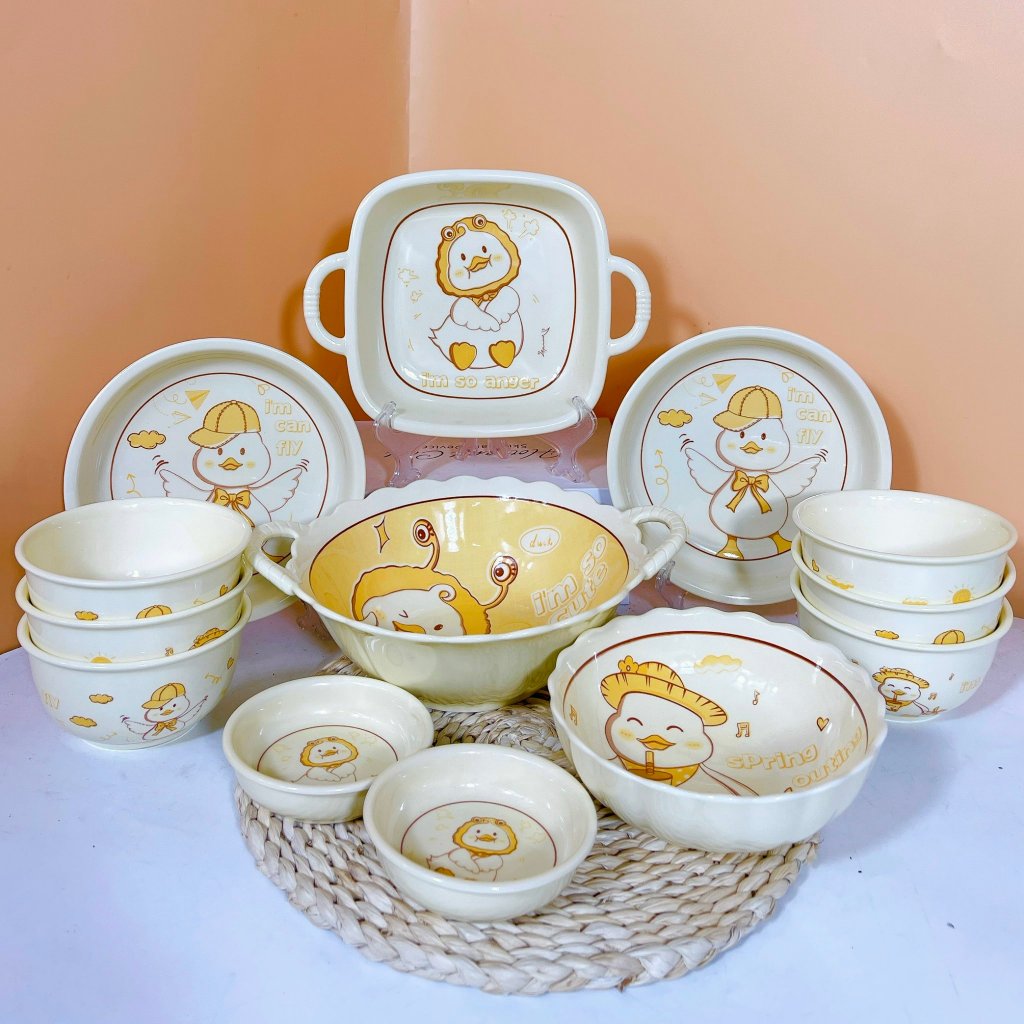 Bộ Bát Đĩa Thương Hiệu Gosu Họa Tiết Con Gà Dễ Thương Tráng Men Cao Cấp