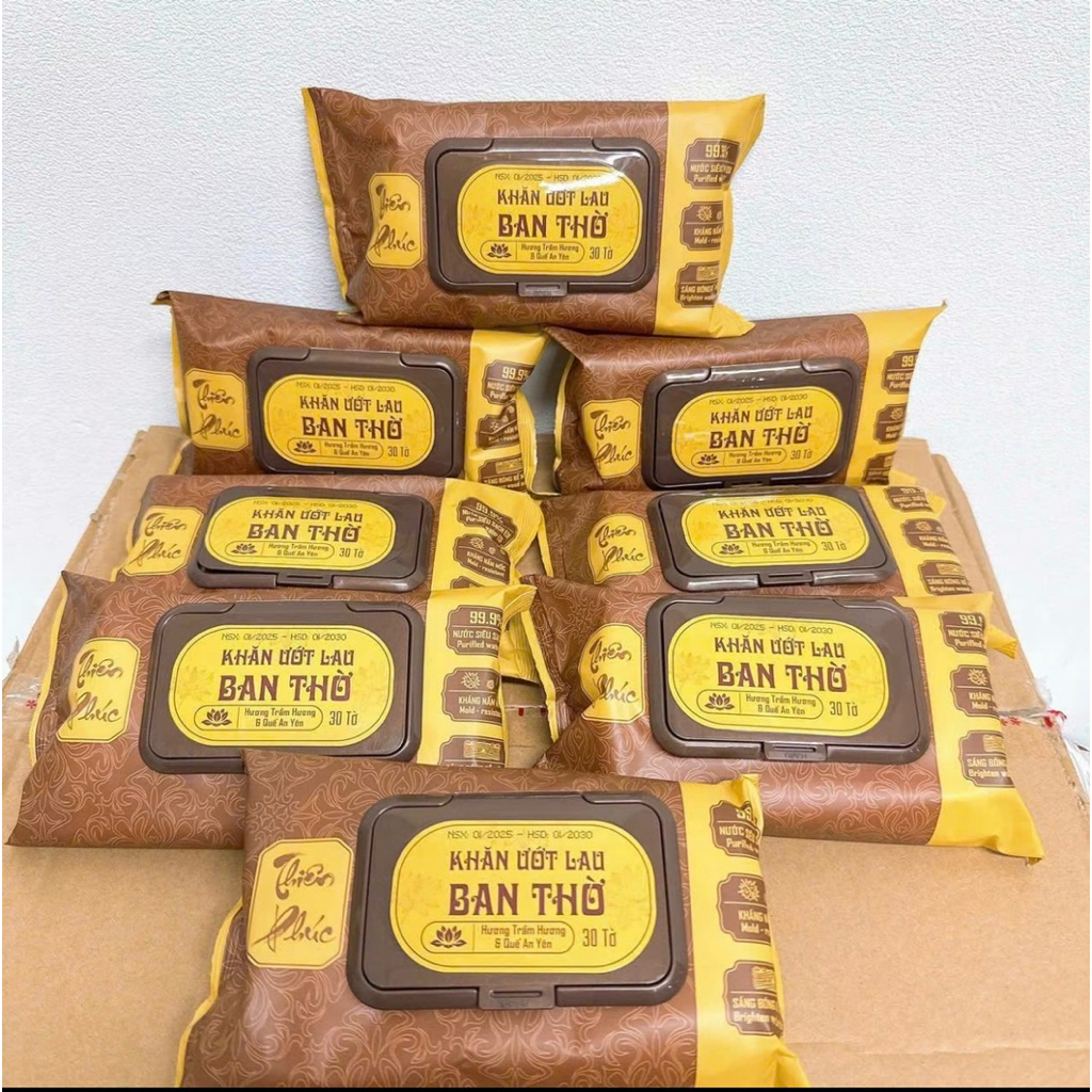 Thùng 12 Gói Khăn ướt Bao Sái Ban Thờ THIÊN PHÚC Cao Cấp , Khăn Ướt Lau Ban Thờ Hương Trầm Tự Nhiên An Toàn Tiện Lợi