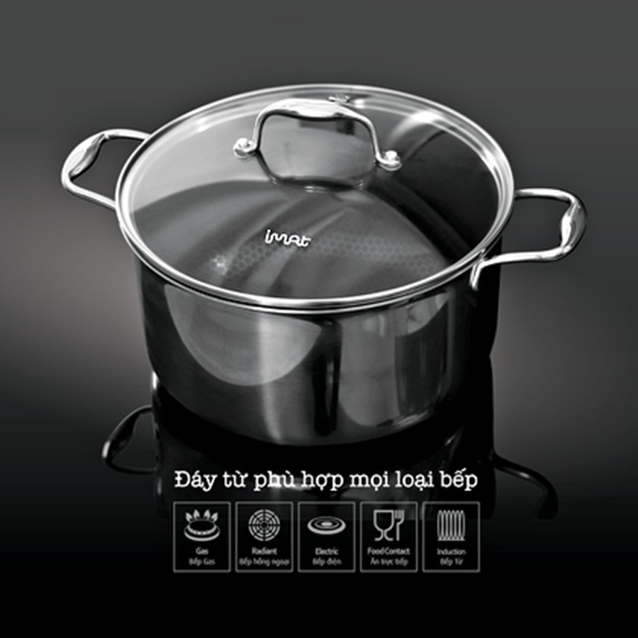 Bộ 6 Nồi Chảo iNox iMat Hybrid Blackcube.03 Nồi 16,22,26cm+ 02 Chiên 20,28cm+ 01 Chảo Đa Năng 20cm