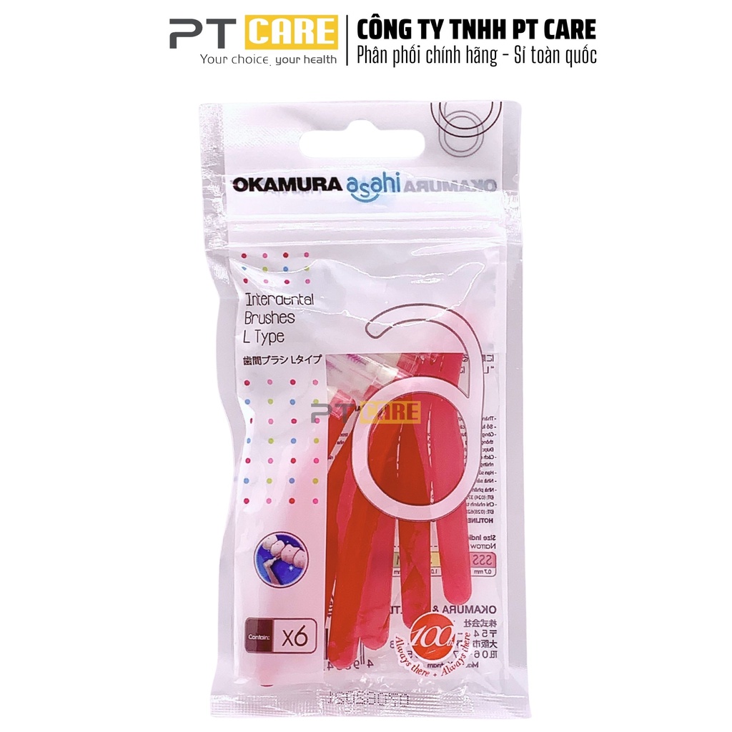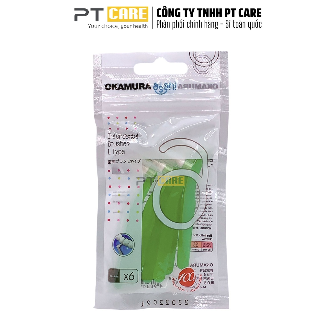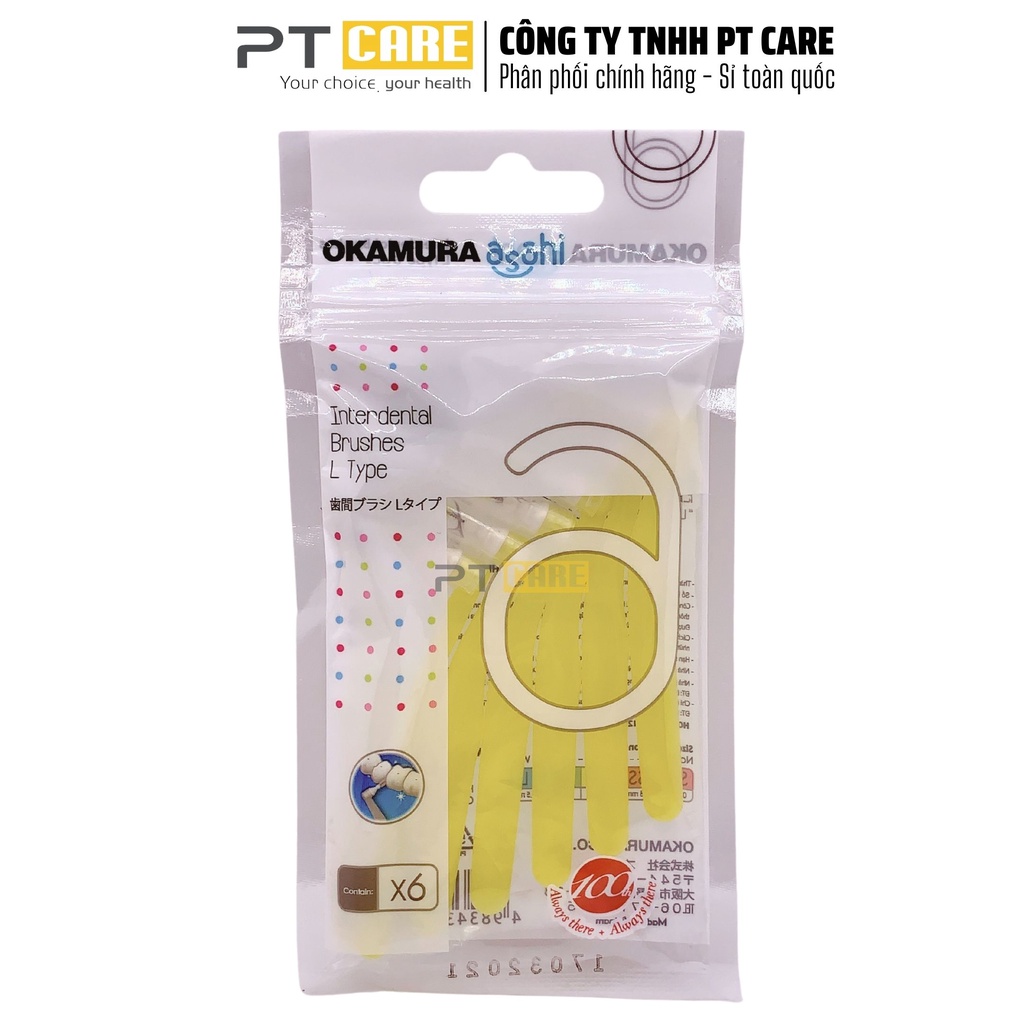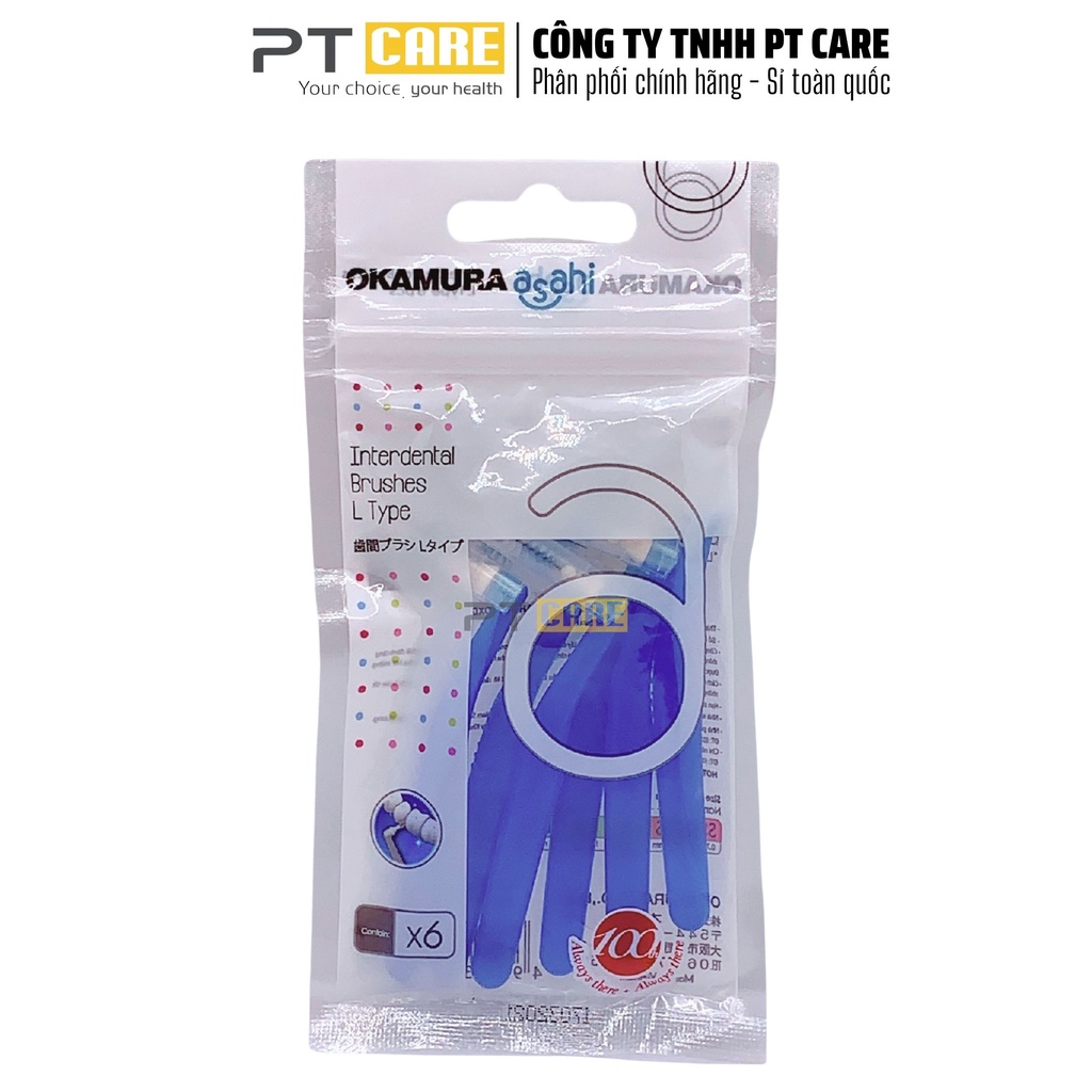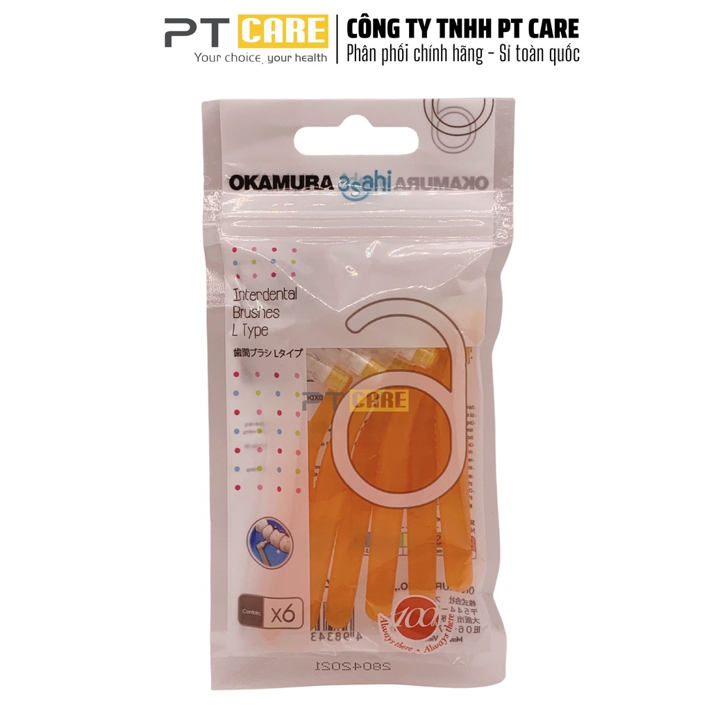 PT CARE VN | 1 Gói Bàn Chải Kẽ Răng Dạng L Nhiều Size Okamura Asahi Cho Người Niềng Răng Chỉnh Nha 6 Cây