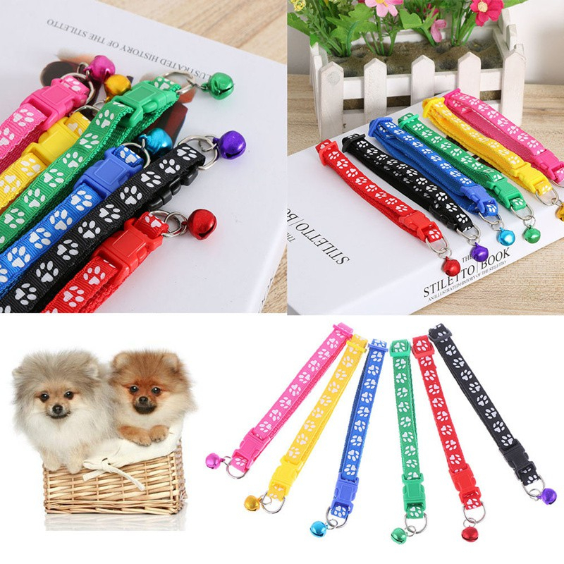 Vòng cổ lục lạc cho thú cưng hình dấu chân chó mèo,Thiết kế khóa bấm giúp