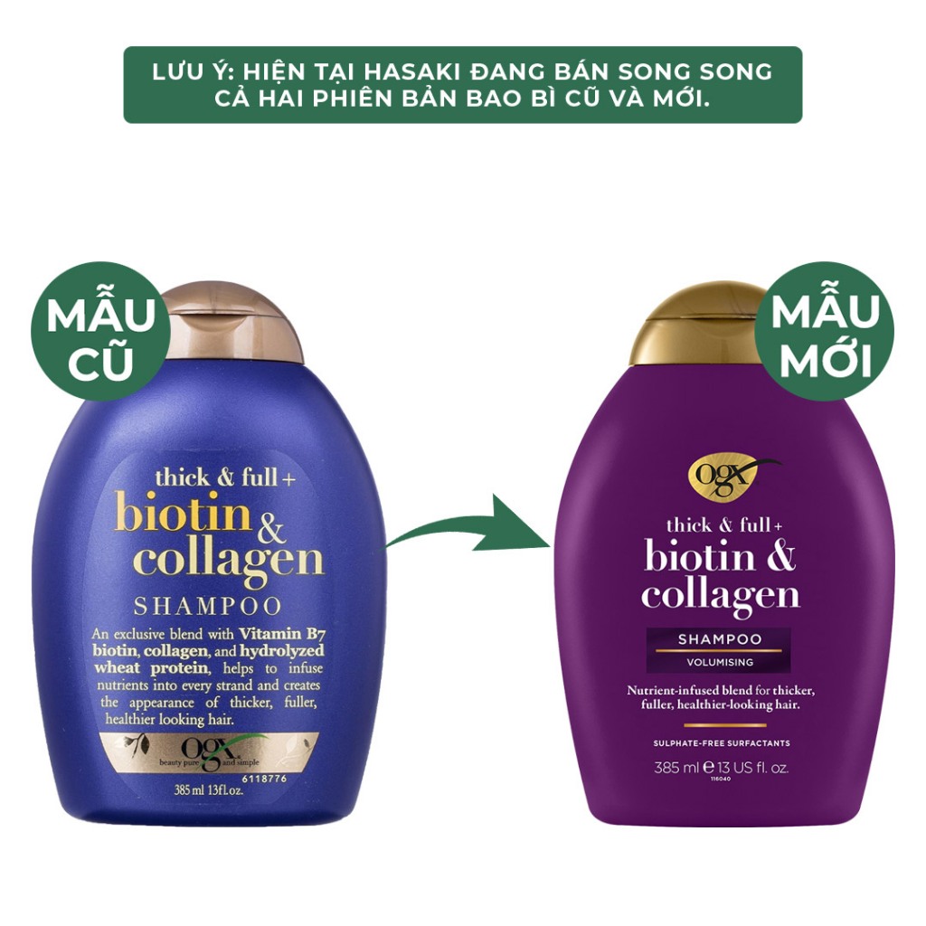 Combo 2 Dầu Gội OGX Biotin & Collagen Làm Dày Tóc 385ml Hasaki Sản Phẩm Chính Hãng