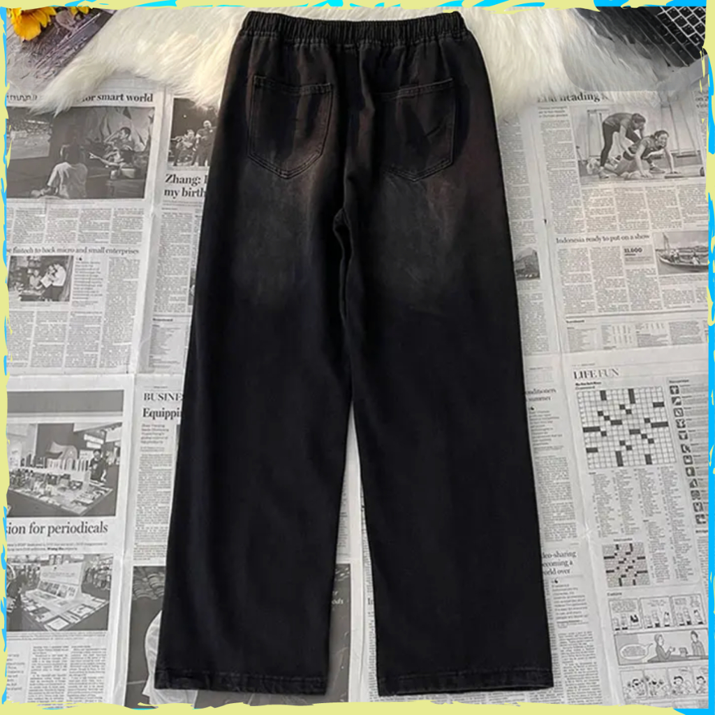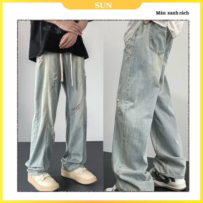 Quần jean ống rộng cạp chun nam nữ KHÓI RÁCH Unisex SUN 09 dễ phối đồ , phong cách trẻ trung