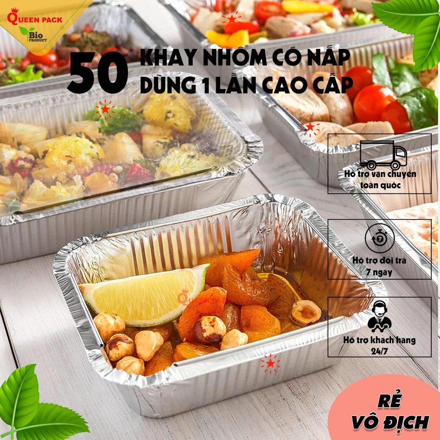Sỉ 50 Cái Khay Nhôm 1 Ngăn Size 350ml/500ml/750ml/1200ml/2000ml Kèm Nắp Đựng Thực Phẩm Hàng Cao Cấp