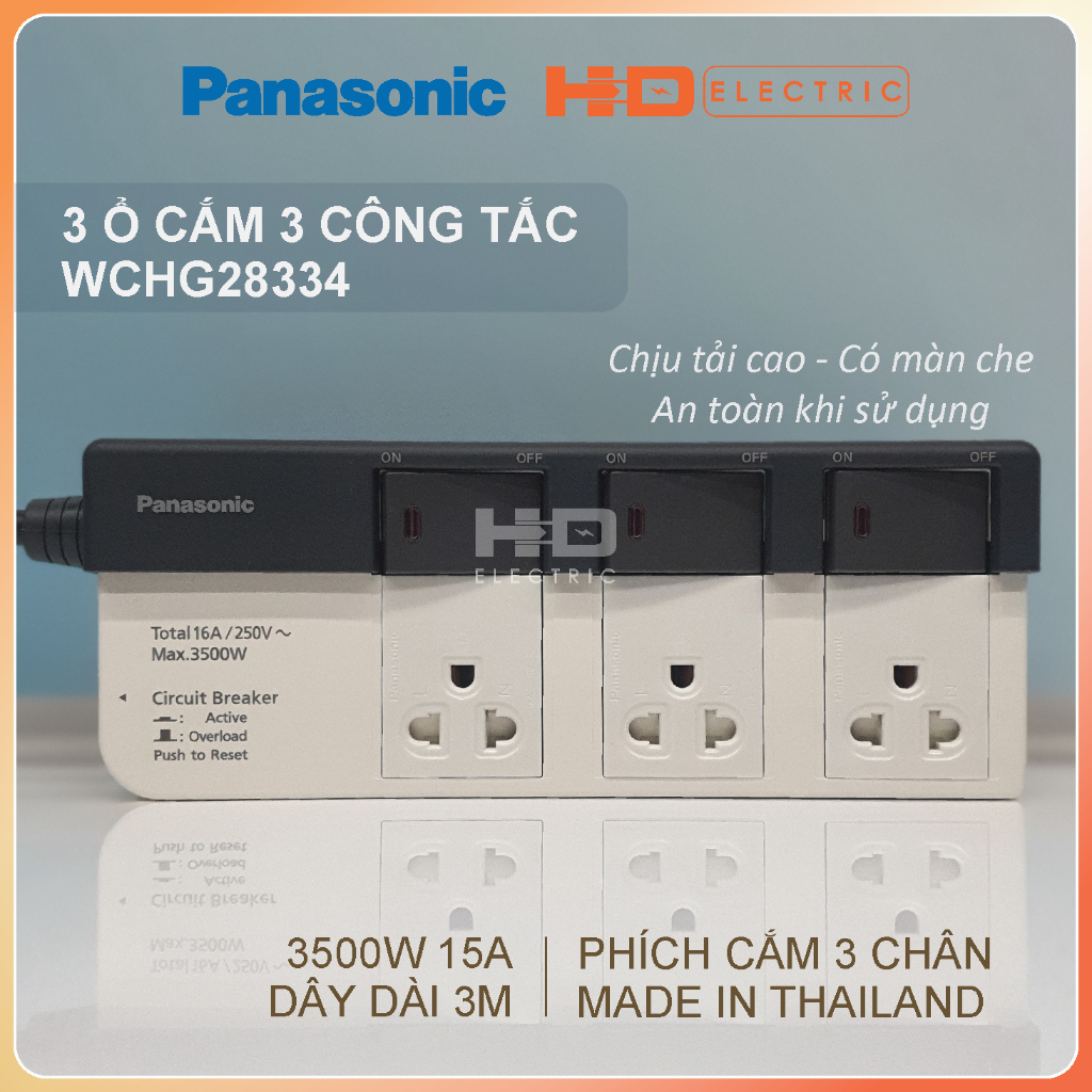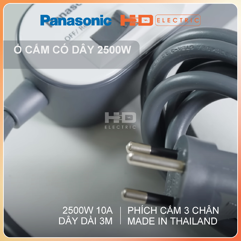 Ổ cắm có dây Panasonic công suất 2500W và 3500W Panasonic phích cắm 3 chân tròn xuất xứ Thái Lan