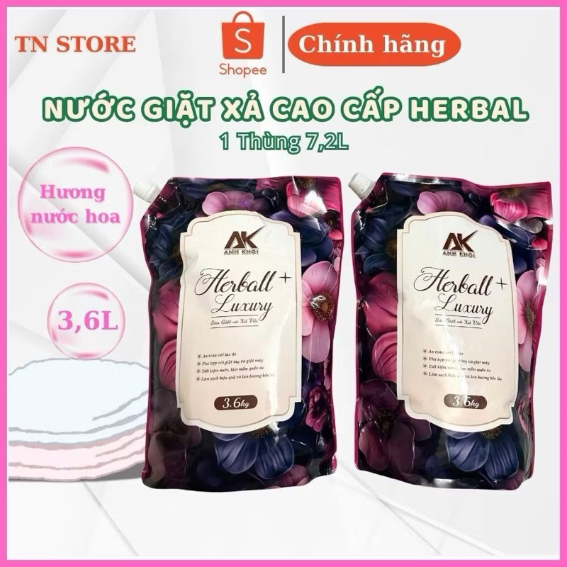 THÙNG 4 TÚI NƯỚC GIẶT HƯƠNG HOA HERBAL LUXURY HƯƠNG HOA PHÁP, NƯỚC GIẶT SINH HỌC TÚI 3600ML