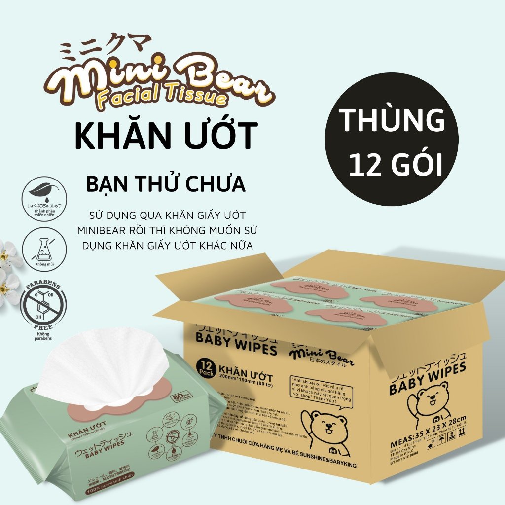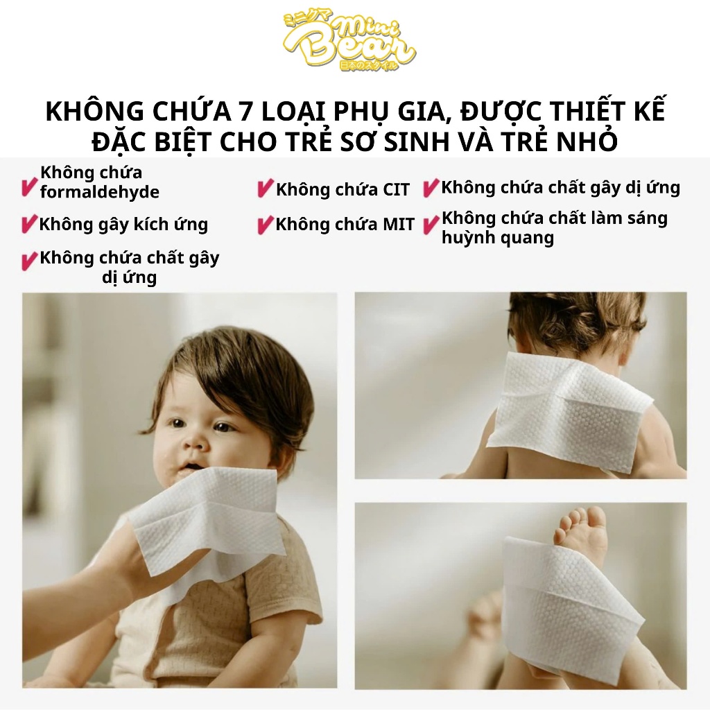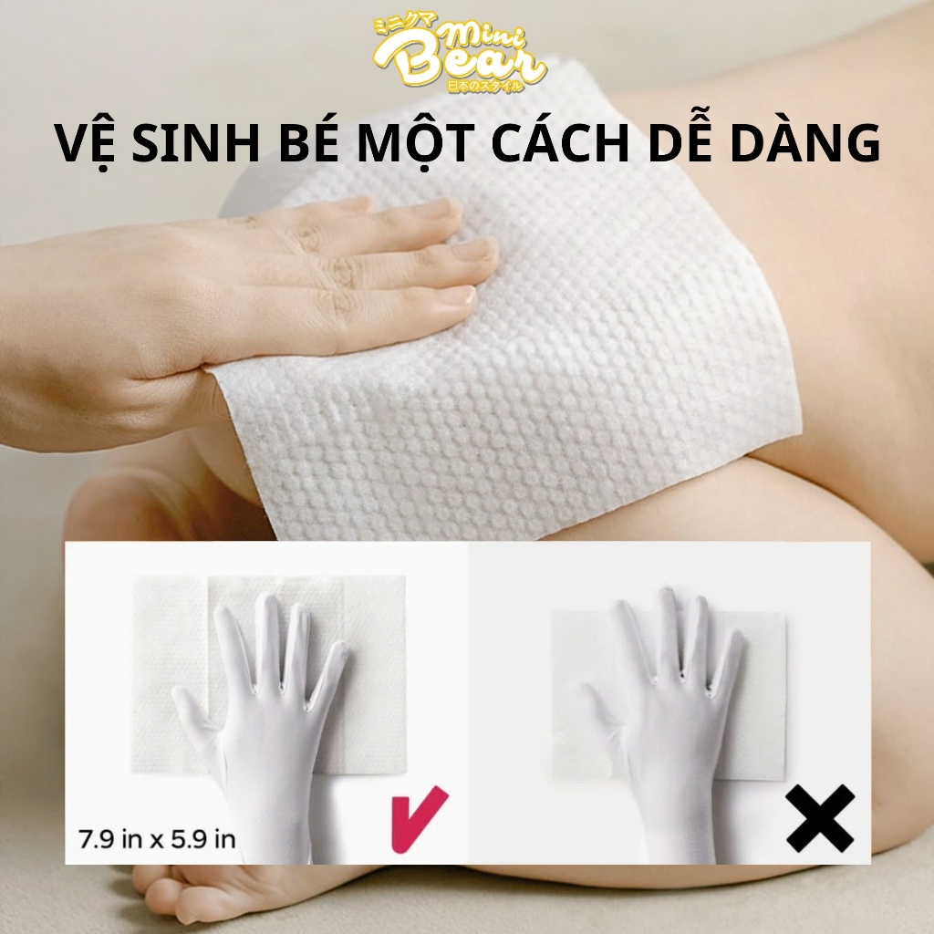 M Mini Bear Facial Tissue Khăn ướt cao cấp an toàn cho bé Nhật Bản không mùi, không hương liệu MNBKU