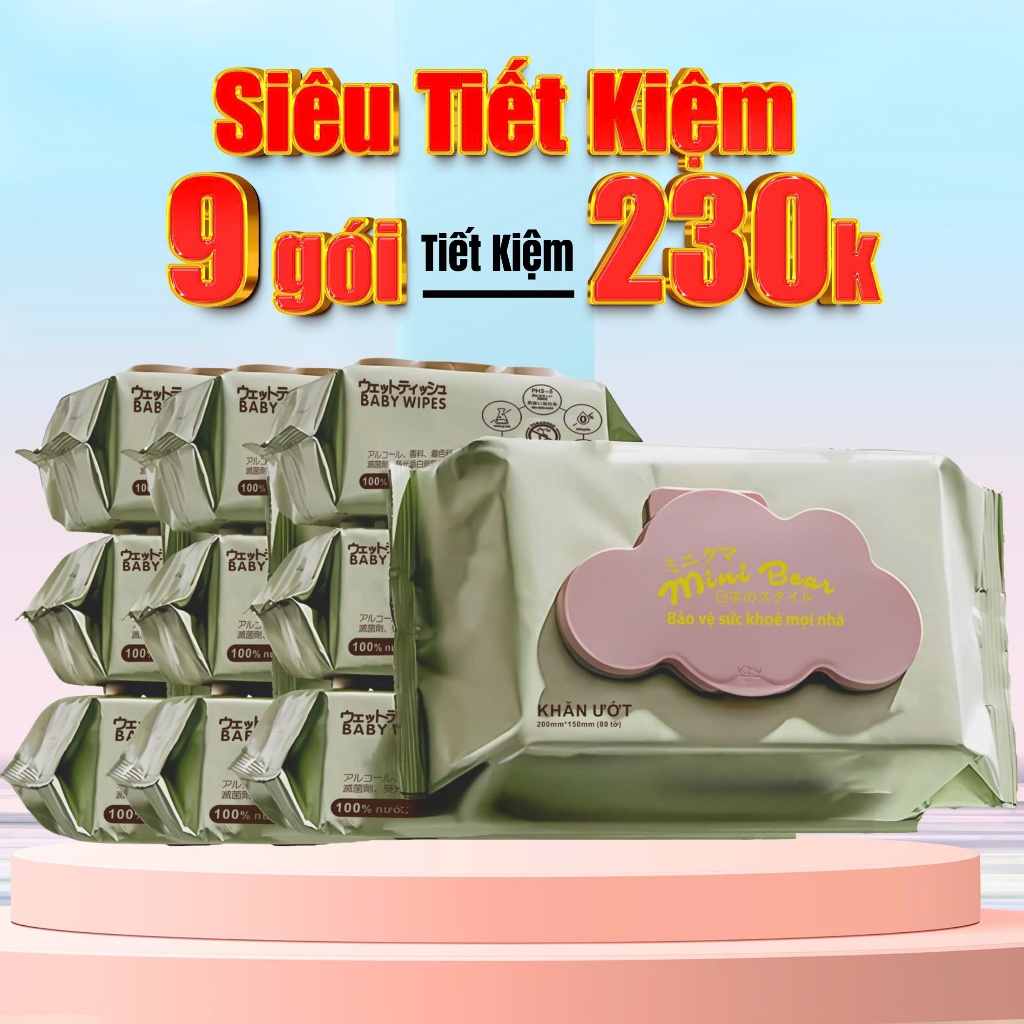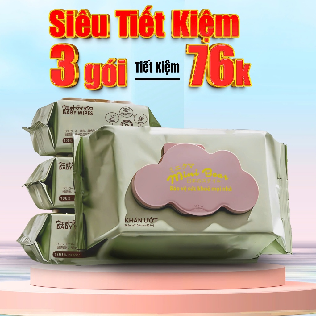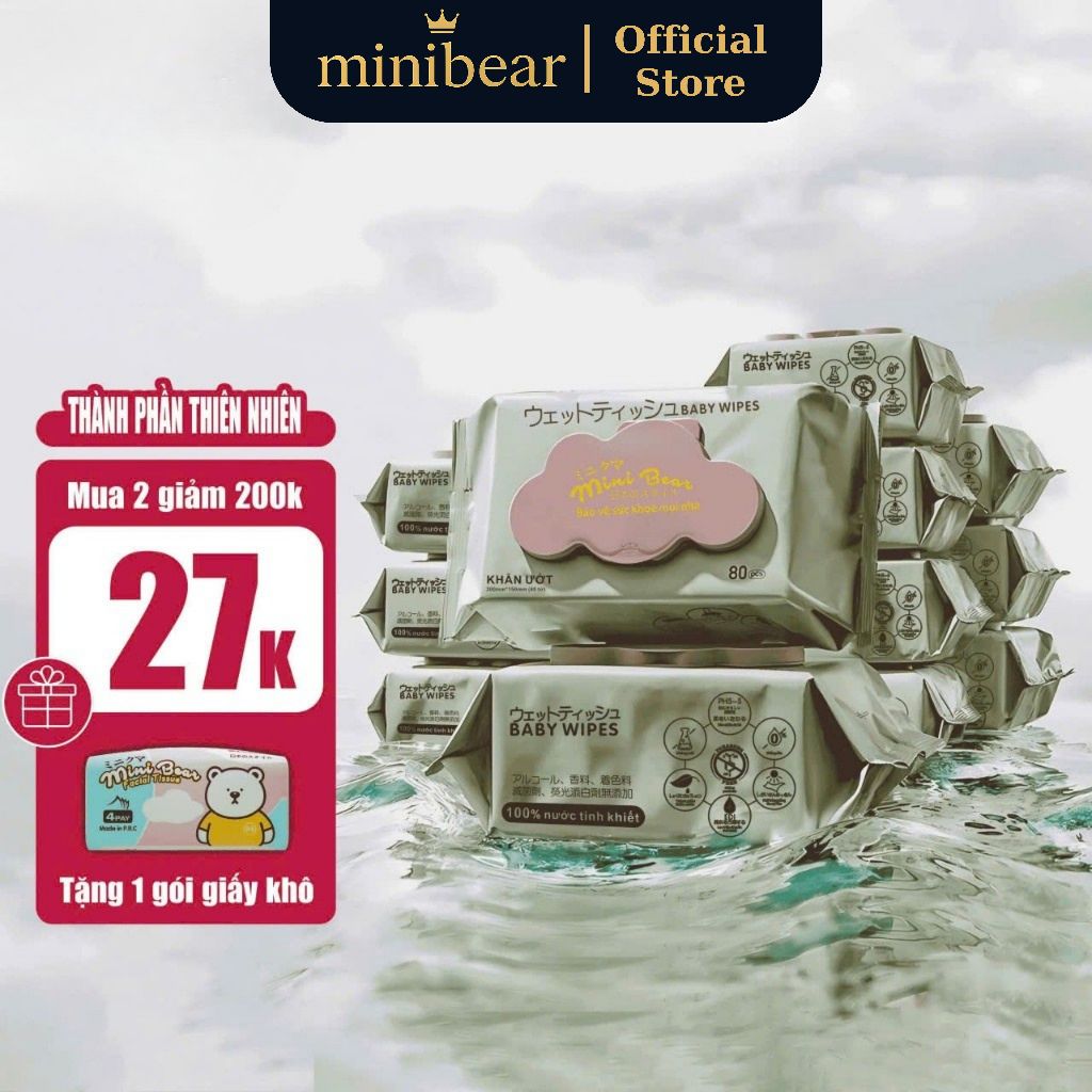 M Mini Bear Facial Tissue Khăn ướt cao cấp an toàn cho bé Nhật Bản không mùi, không hương liệu MNBKU