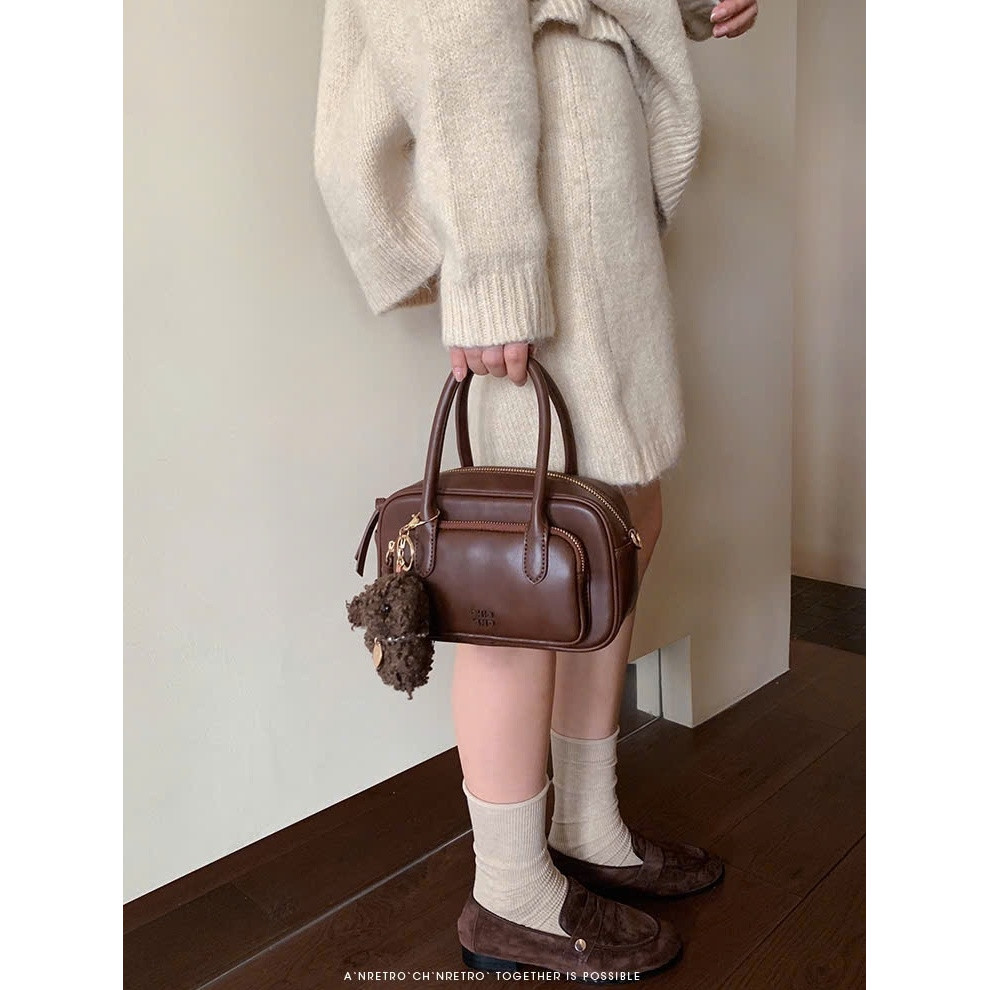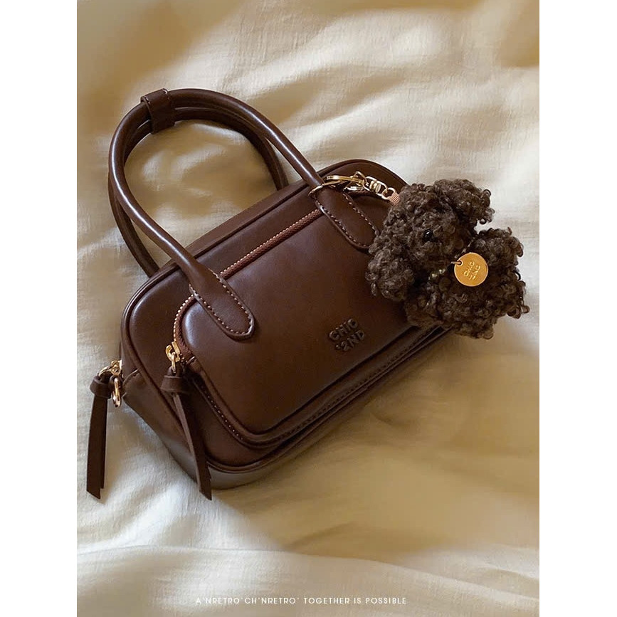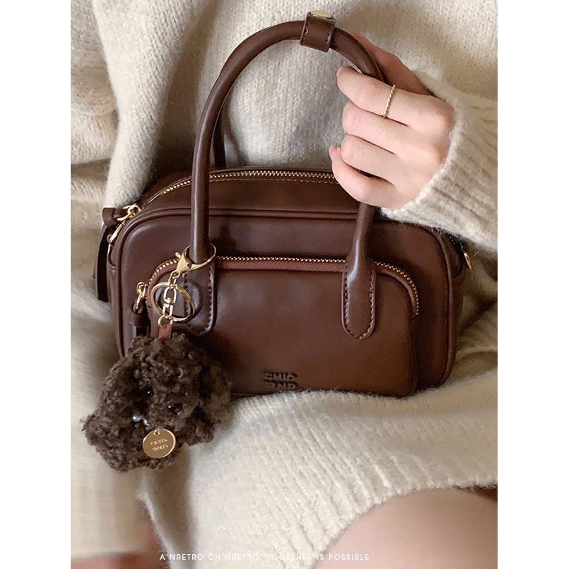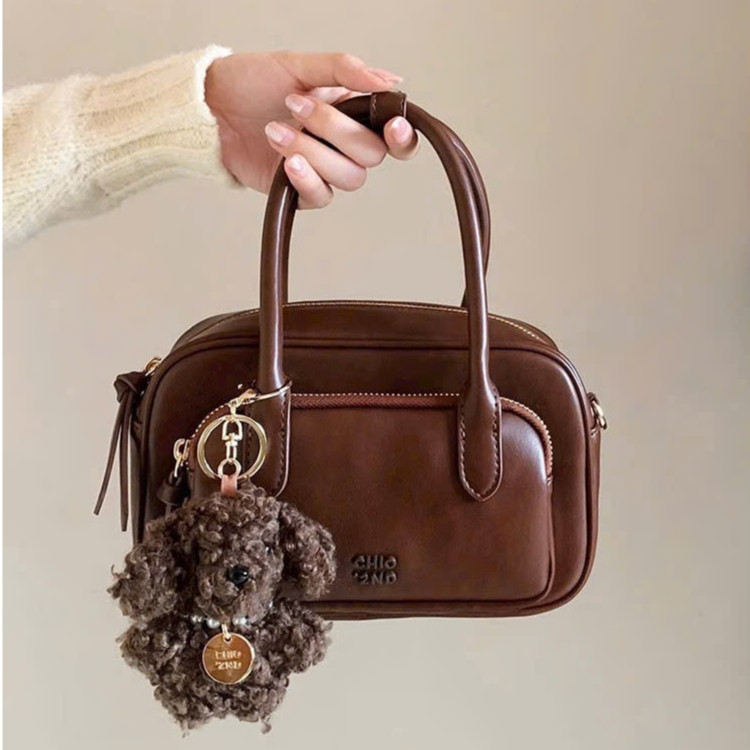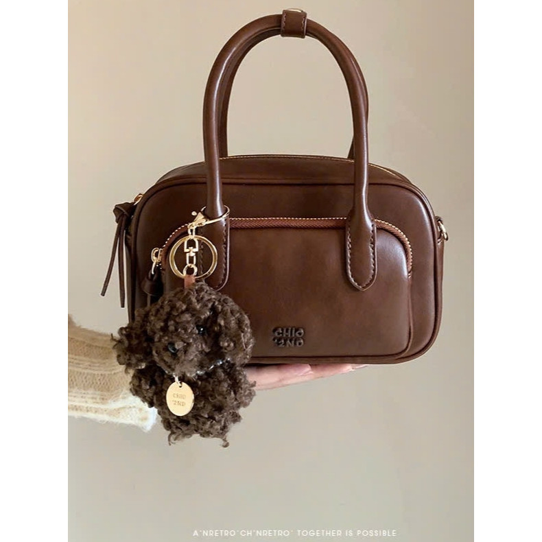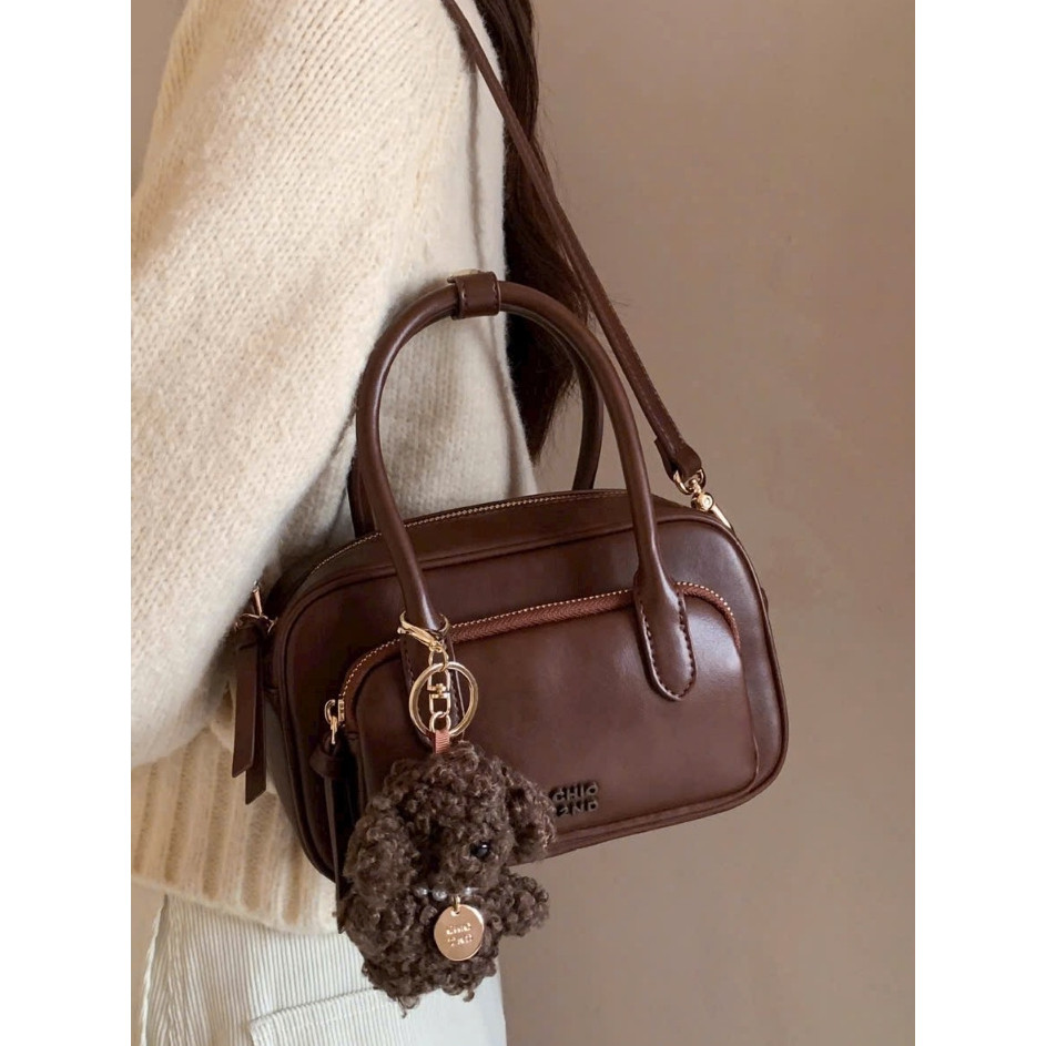 Túi nữ Túi Chio 2nd 2 tầng size 21 tặng kèm gấu xù màu Nâu vintage siêu đẹp phong cách Hàn Quốc #103