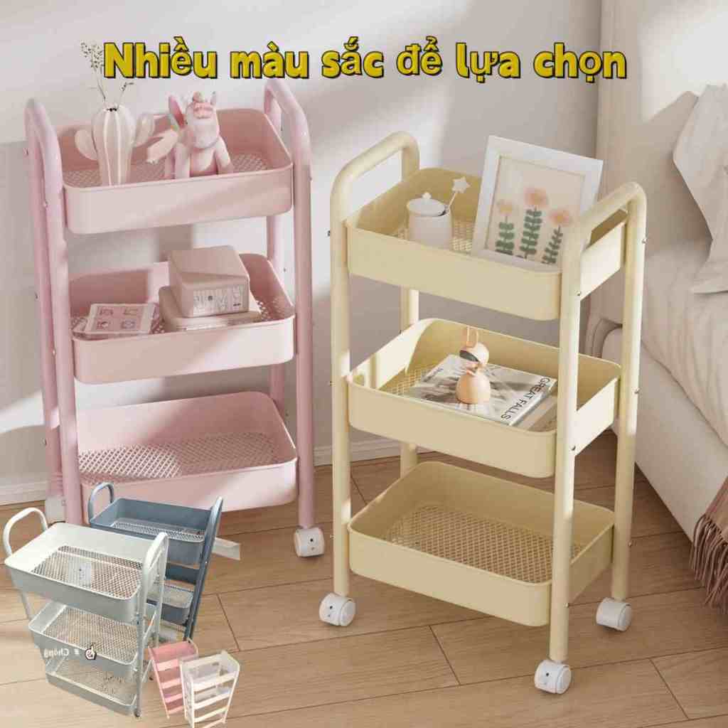 Xe Đẩy Spa có bánh xe Kệ sắt đa năng Xe để đồ 3 tầng Thời trang cao cấp 【100%Thép】
