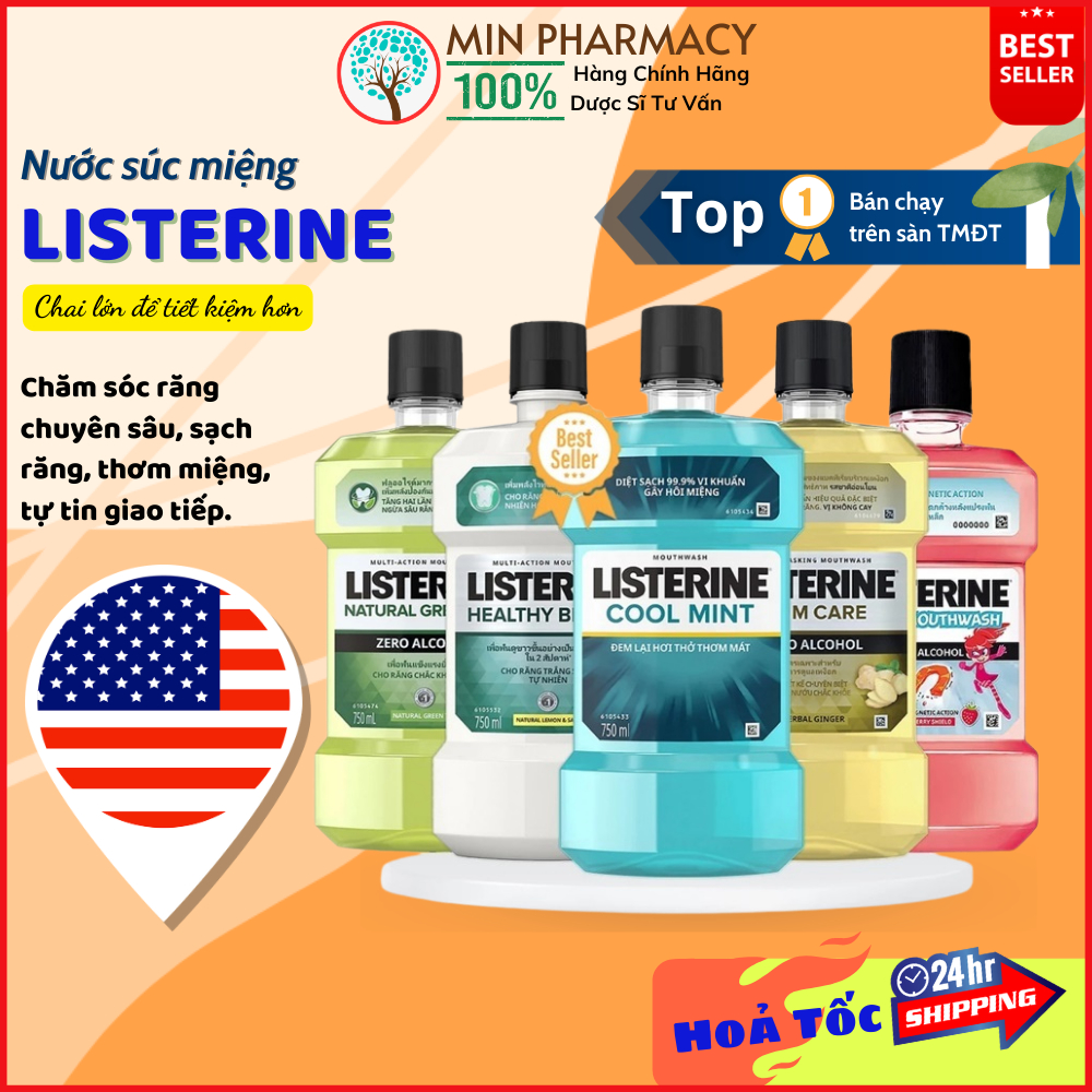Nước súc miệng Listerine hơi thở thơm mát (Listerin bạc hà cool, trà xanh, gừng) 250ml -Minpharmacy