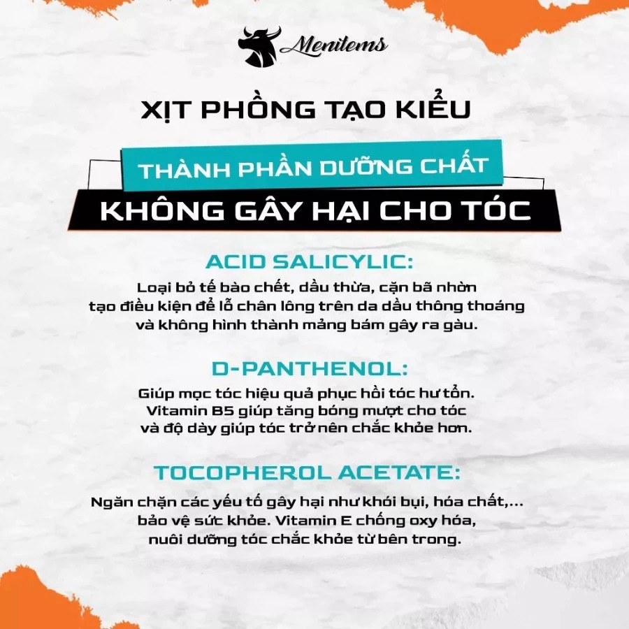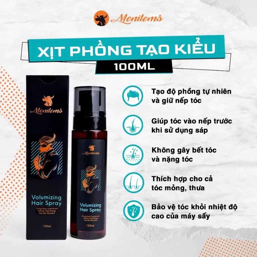 Xịt Tạo Phồng Tóc Nam Menitems Volumizing Hair Spray Giúp Giữ Nếp Tự Nhiên Chống Bết Dính 100ml
