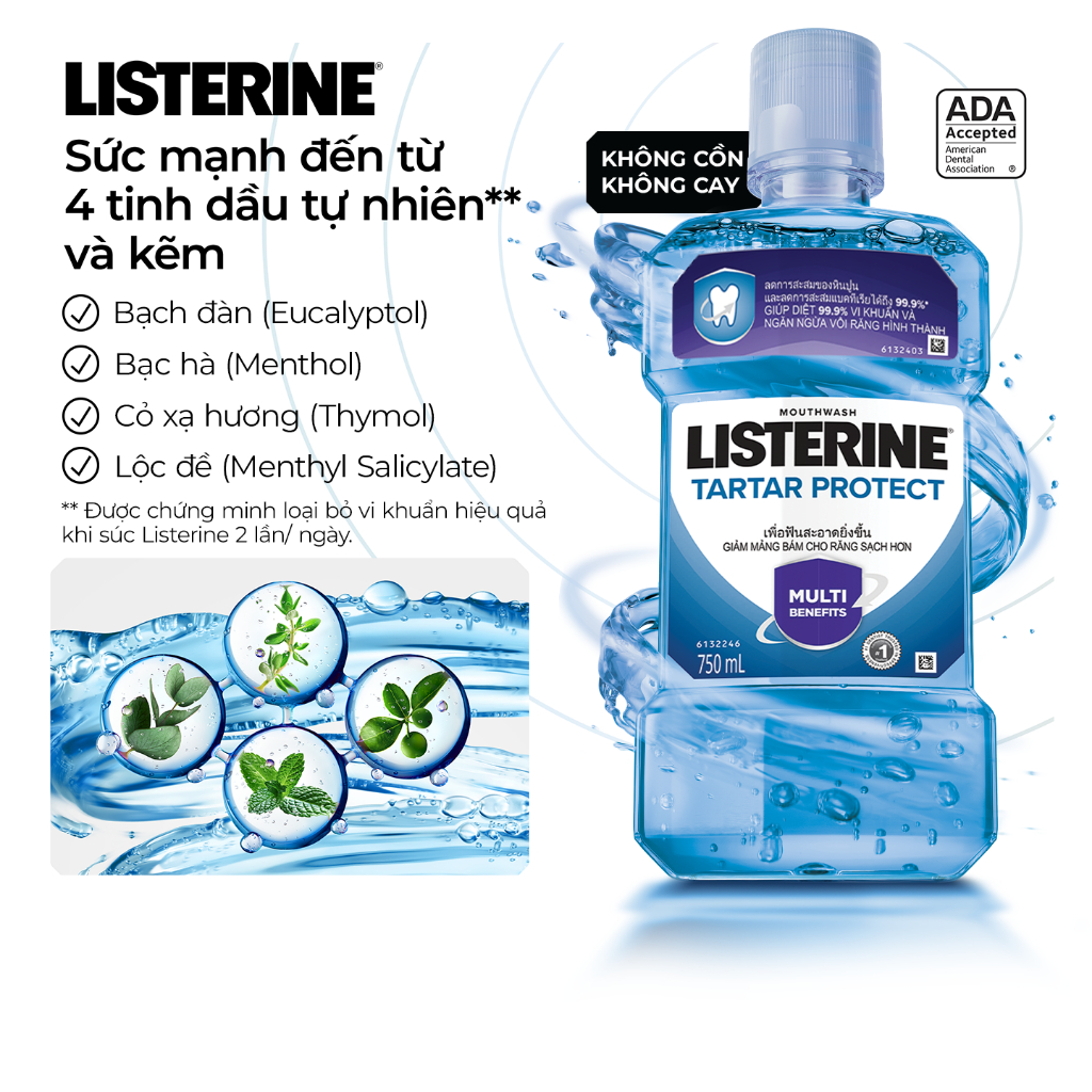 Bộ 2 Nước súc miệng ngăn mảng bám Listerine Tartar Protect 750ml/chai