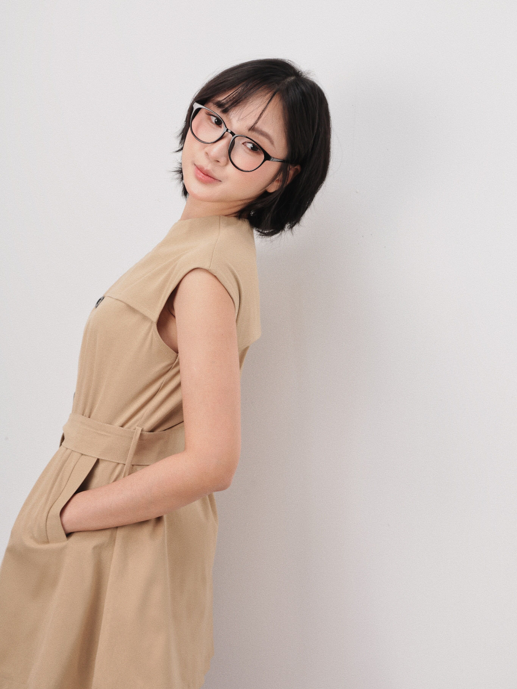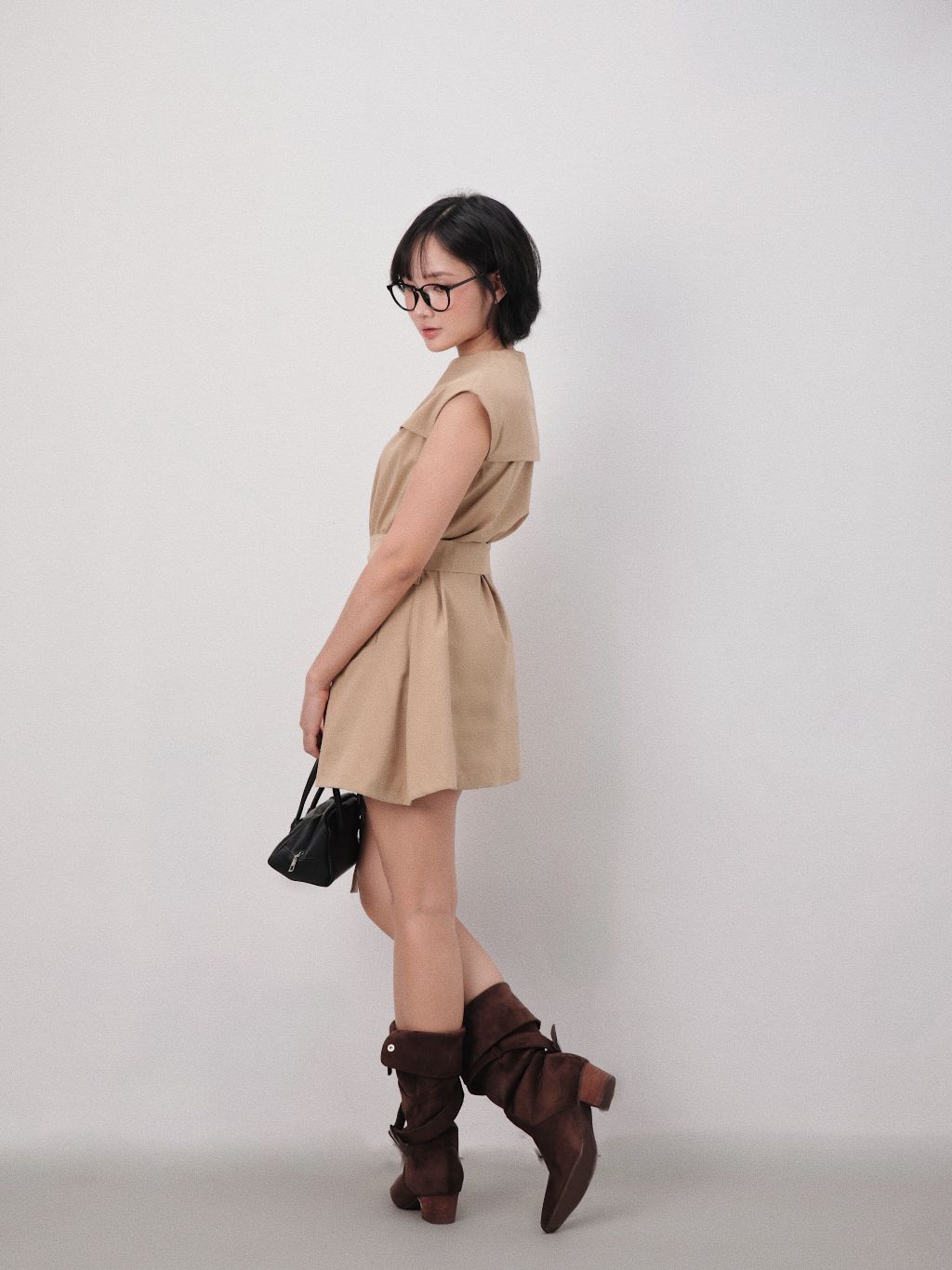 Seleen, Đầm liền khaki dáng ngắn không tay chi tiết cài nút lệch & dây bu ộc eo, WD0213