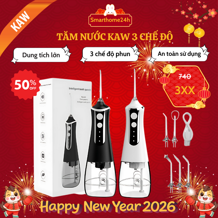 Máy Tăm Nước KAW Hàng Chính Hãng Full 5 Phụ Kiện Đi Kèm, Dung Tích Lớn 300 ML, Vệ Sinh Sạch Sẽ Răng Miệng