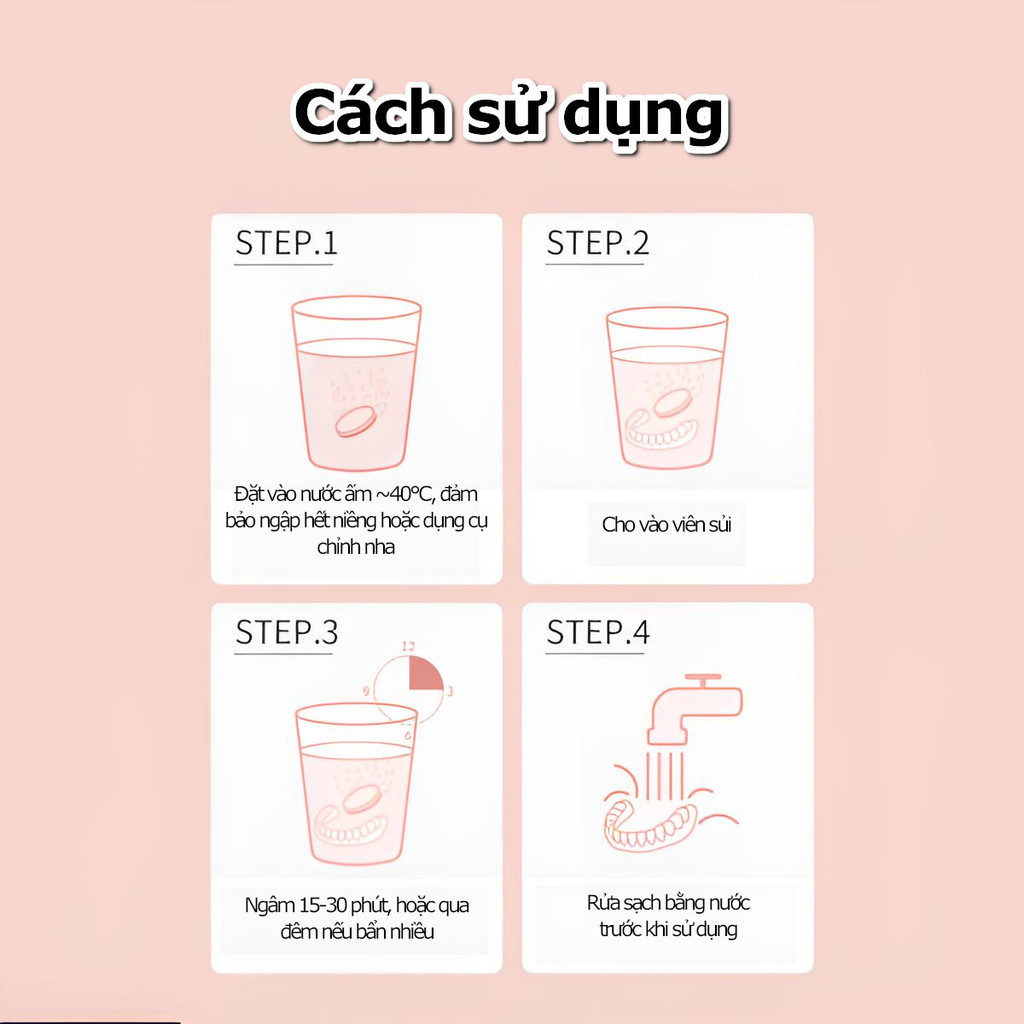 Viên sủi ngâm làm sạch và vệ sinh hàm giả răng giả hàm tháo lắp, vệ sinh khay chỉnh nha Efferdent/Polident