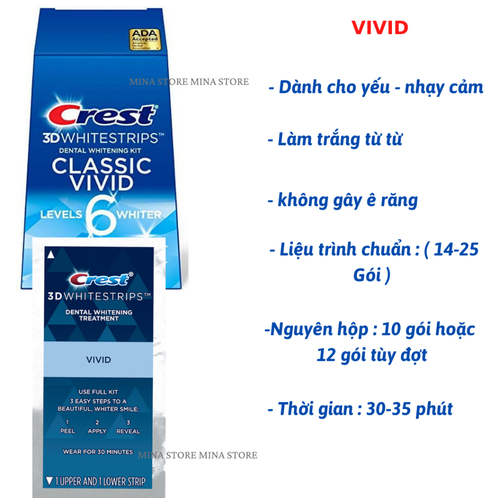 Combo 7 gói miếng dán trắng răng Crest 3D White nhập khẩu Mỹ - Trắng răng cấp tốc sau 1 liệu trình