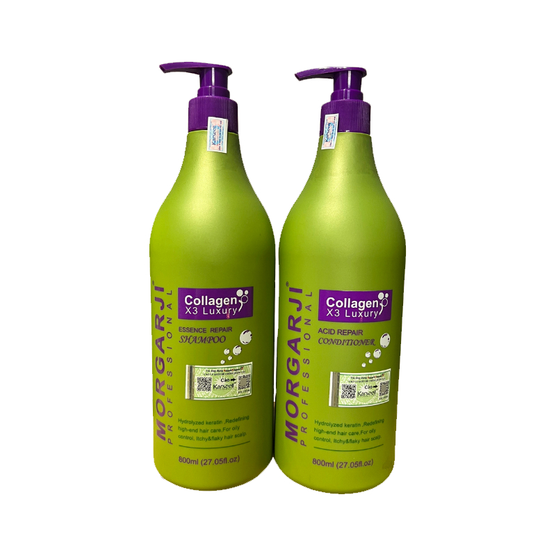 Cặp dầu gội xả Collagen phục hồi tóc hư tổn siêu mượt hương thơm hoa quả Morgarji Luxury 800ML