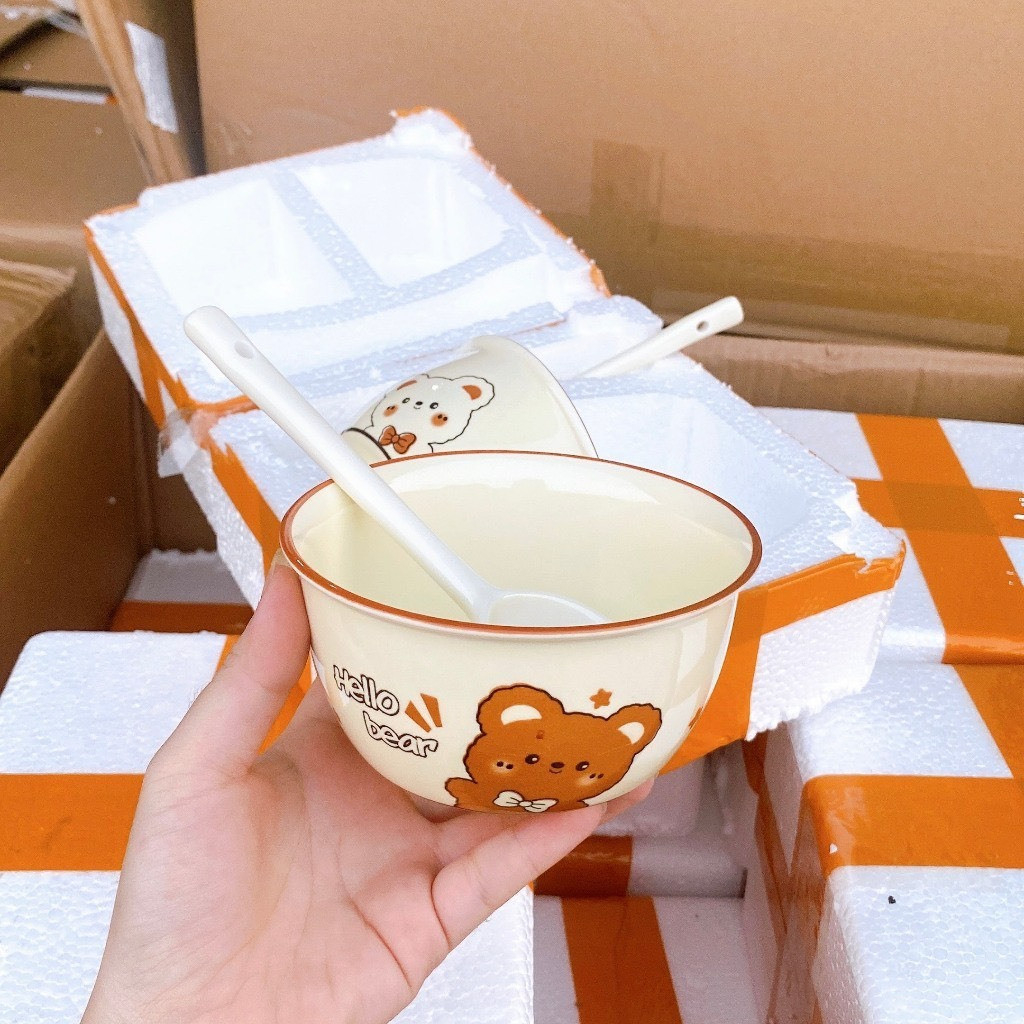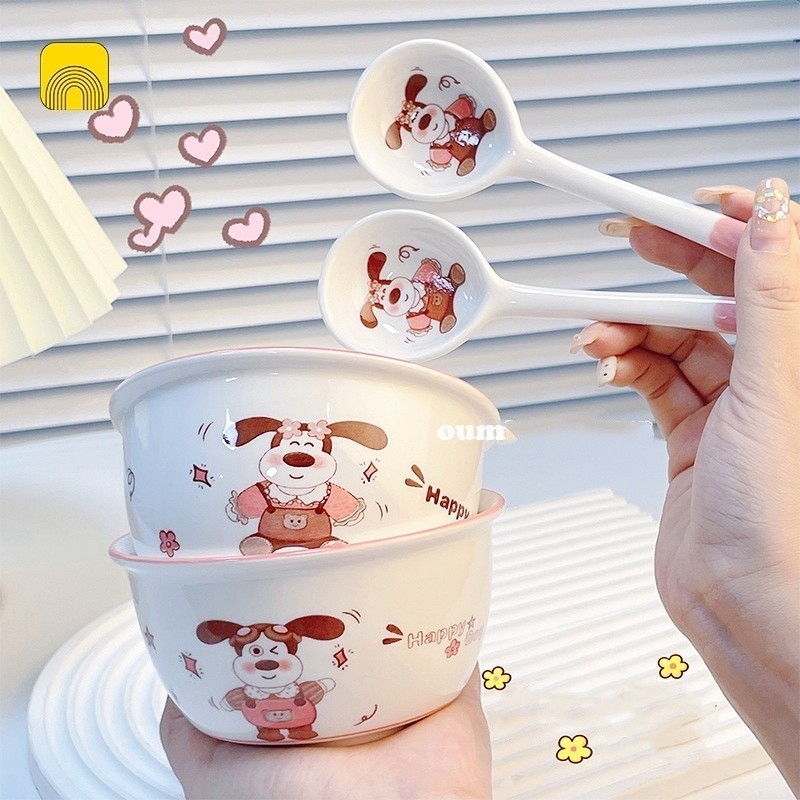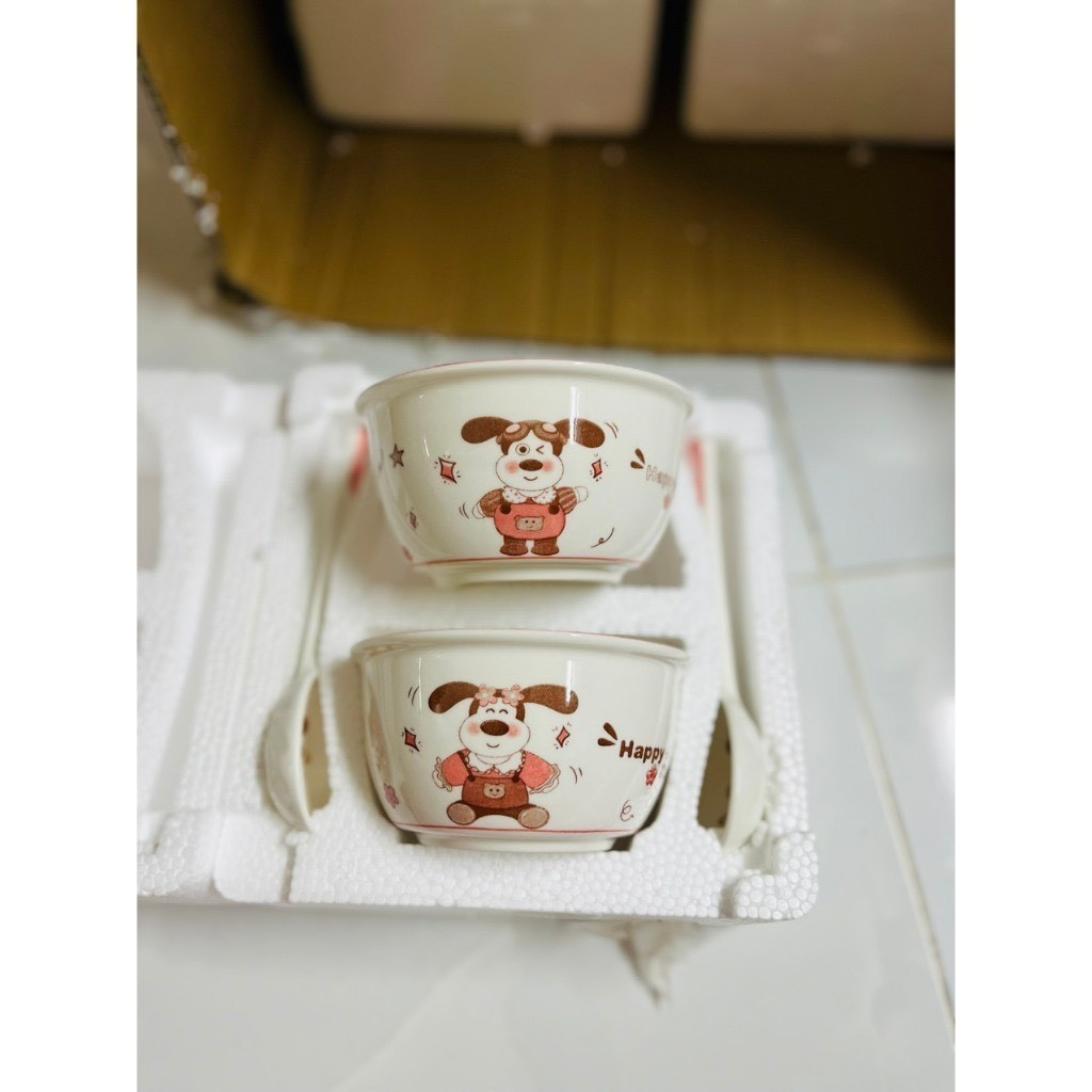 SET 2 BÁT CÚN HỒNG KÈM 2 THÌA SIÊU XINH- BÁT LỢN - BÁT GẤU