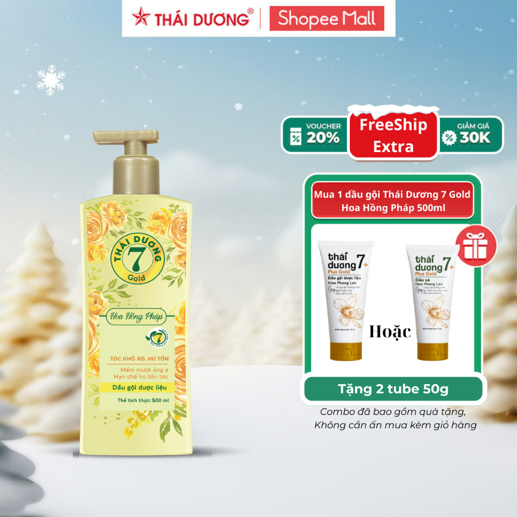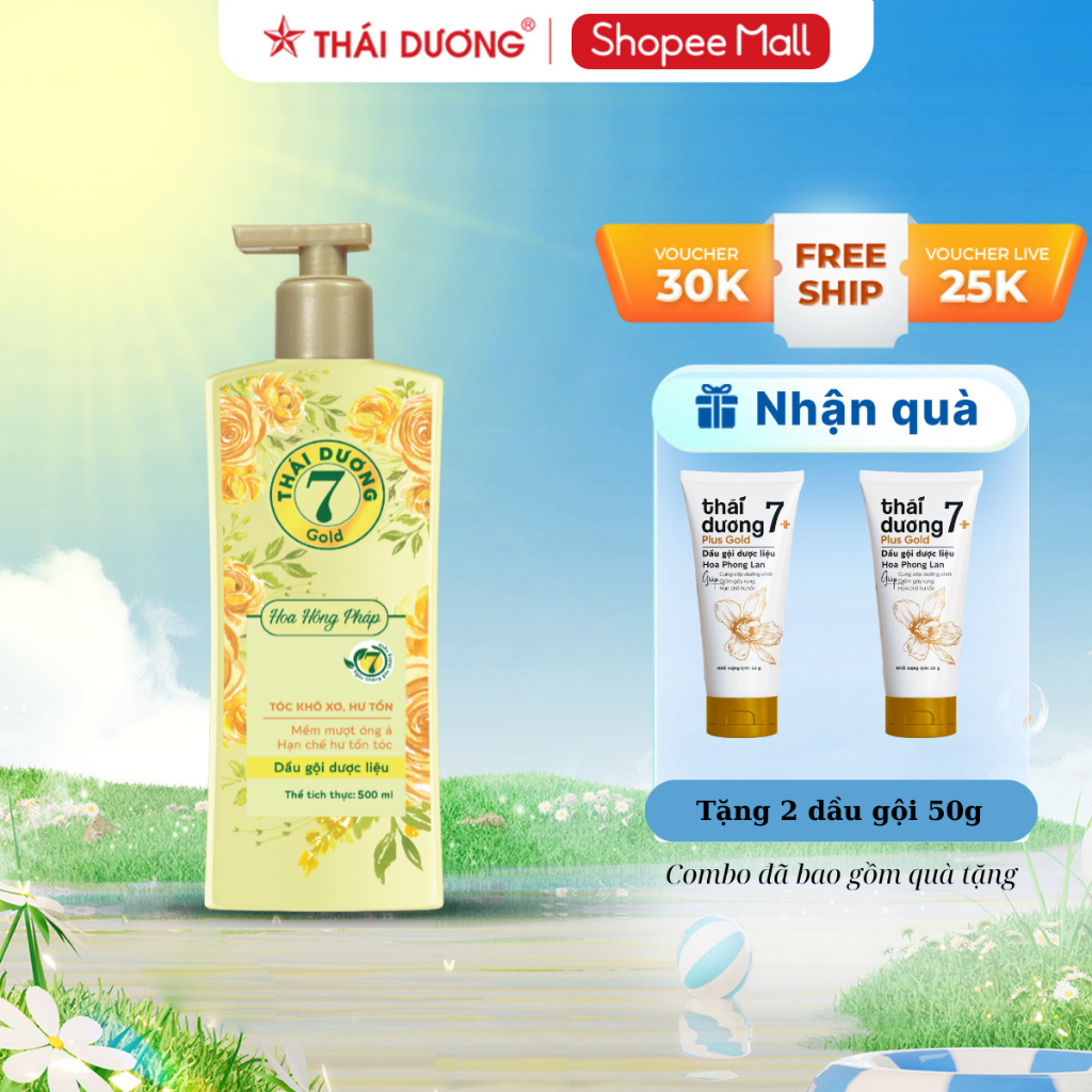 [Live] Combo Dầu gội Thái Dương 7 Gold Hoa Hồng Pháp 500ml tặng 2 Tube Thái Dương 7 Plus Gold 50g