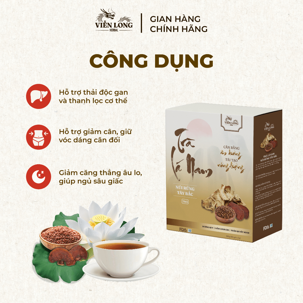 (60 gói) Trà Lá Nam Giảm Cân, Điều Hoà Khí Huyết & Mát Gan, Thanh Lọc Cơ Thể