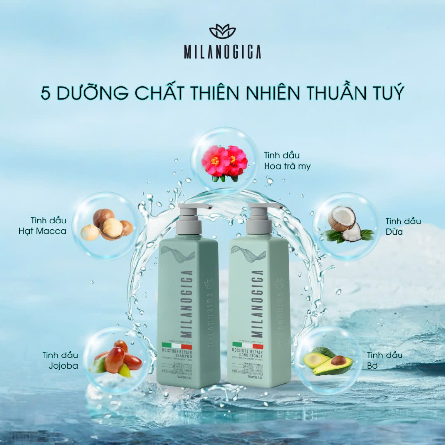 Combo Dầu Gội & Xả nước hoa Milanogica 355ml Phục hồi hư tổn, Giảm gàu sạch ngứa lưu hương đến 12h