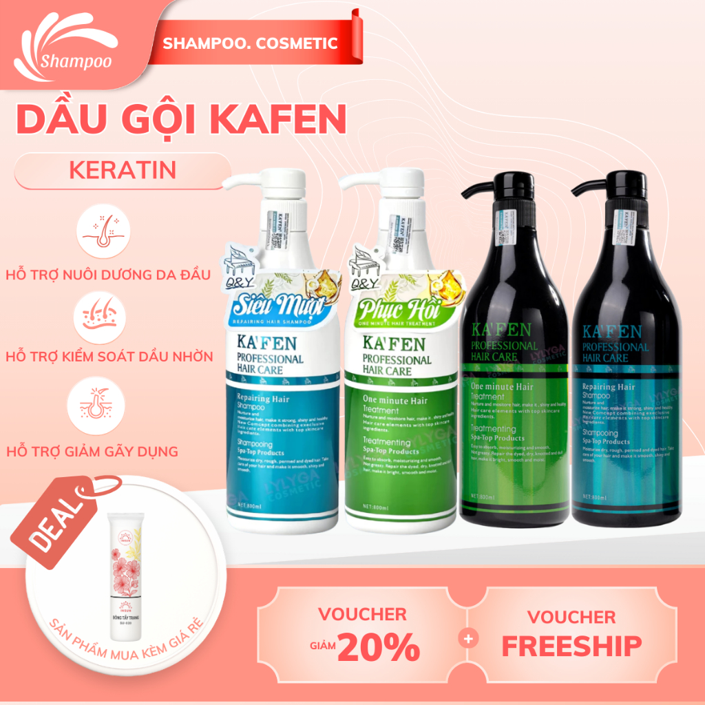 Cặp dầu gội xả KAFEN 800ml xanh phục hồi tóc khô xơ hư tổn phục hồi tóc hư tổn tóc nát tóc yếu