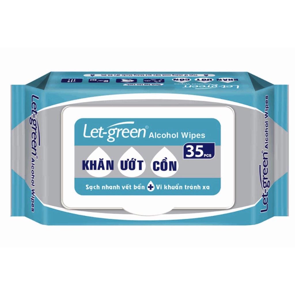 Khăn Ướt Cồn Diệt Khuẩn Đa Năng, Khử Mùi Let-Green Loại 35 Miếng/ Gói