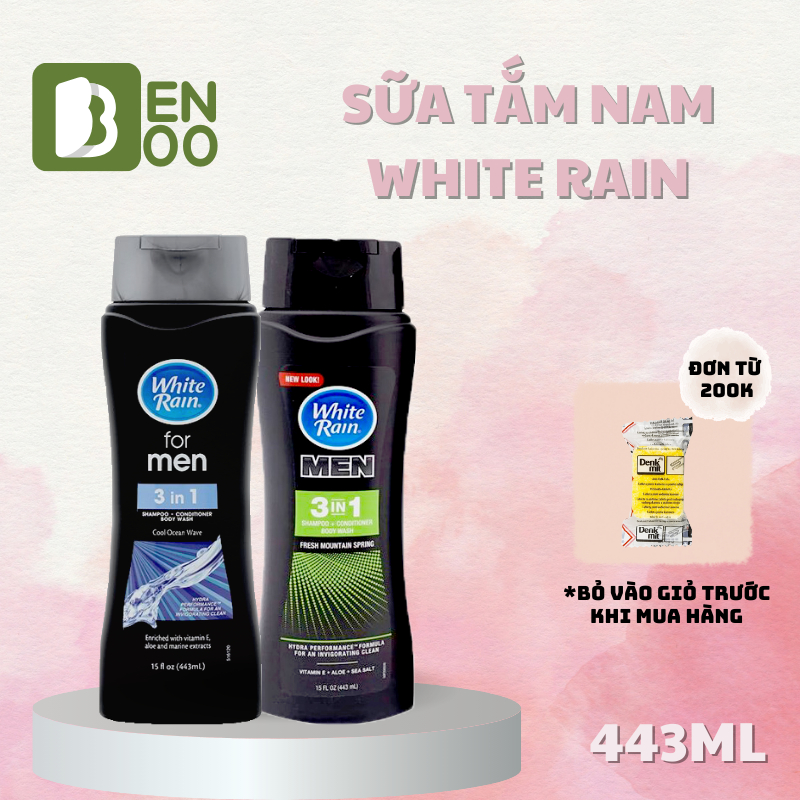 Sữa Tắm Gội Xả Dành Cho Nam White Rain Men 3-Trong-1 Giúp Sạch Gàu, Suôn Mượt, Mùi Hương Nam Tính.