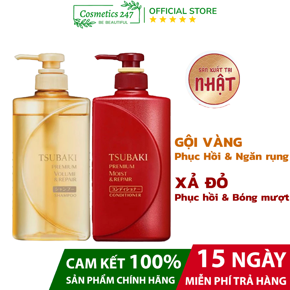 Combo Gội Xả - Dầu Gội Tsubaki Premium Repair Tsubaki (490ml/450ml/chai)